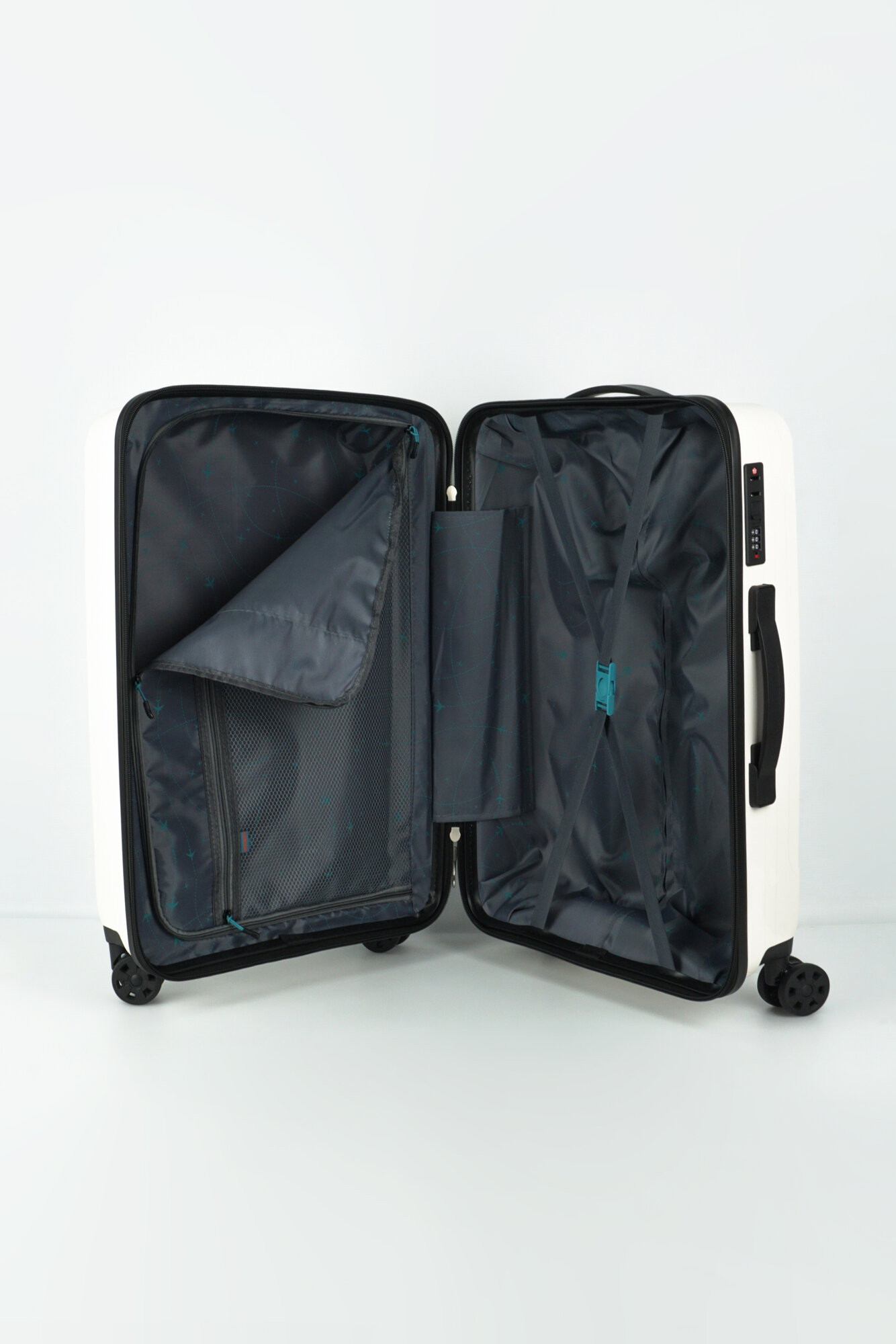 Купить Чемодан Sweetbags средний из полипропилена на 4-х колесах с кодовым замком (Shutter) белый с черным M+