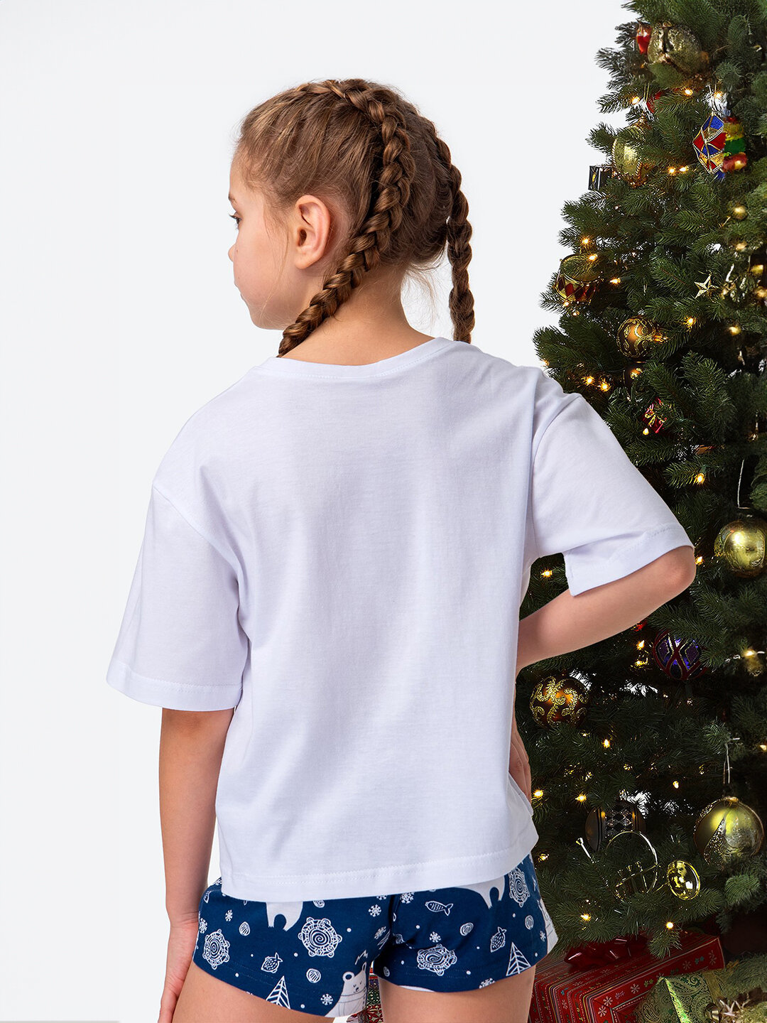 Пижама для девочки подростка хлопковая HF5900DSP белый.медведи.елки.на.чернильном 140