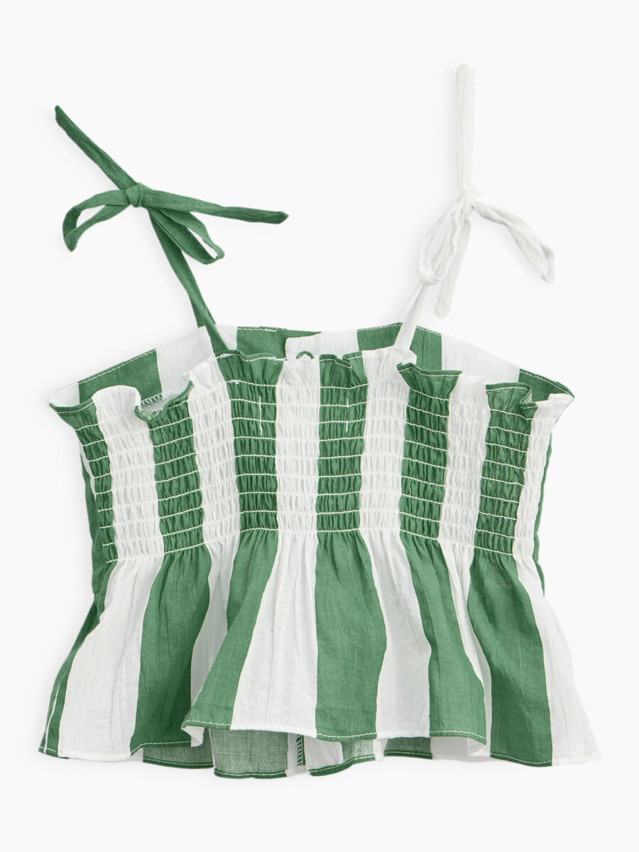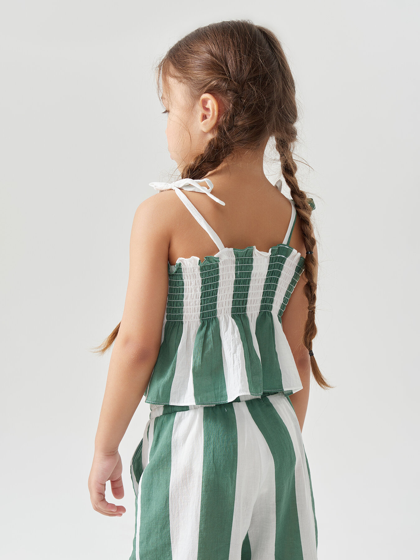 88157, Топ для девочки Happy Baby, топ летний хлопковый, на завязках, одежда для девочки, зеленый в полоску, размер 122-128