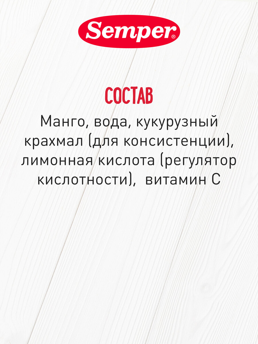 Пюре фруктовое SEMPER Манго, с витаминами, с 6 месяцев, 125г интересное: