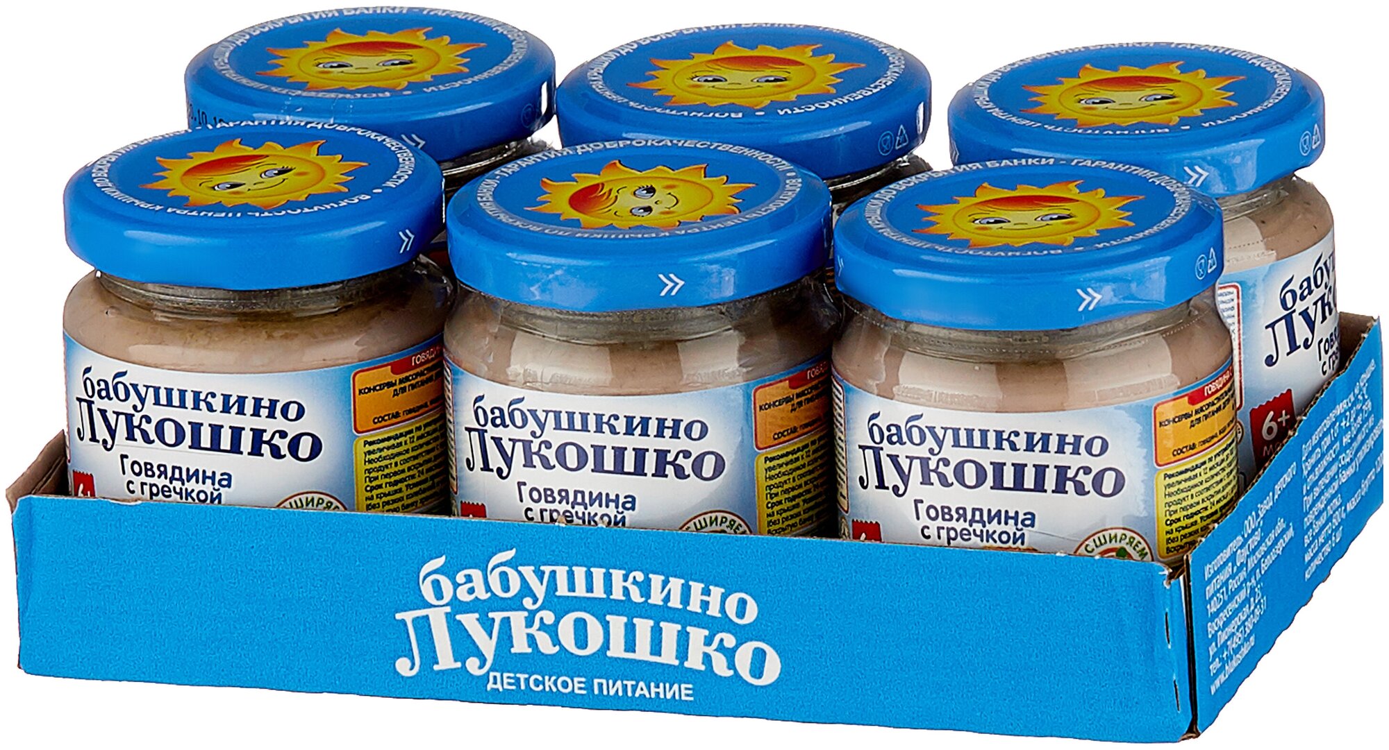 Пюре Бабушкино Лукошко Говядина-гречка (с 6 месяцев), 100 г, 6 шт.