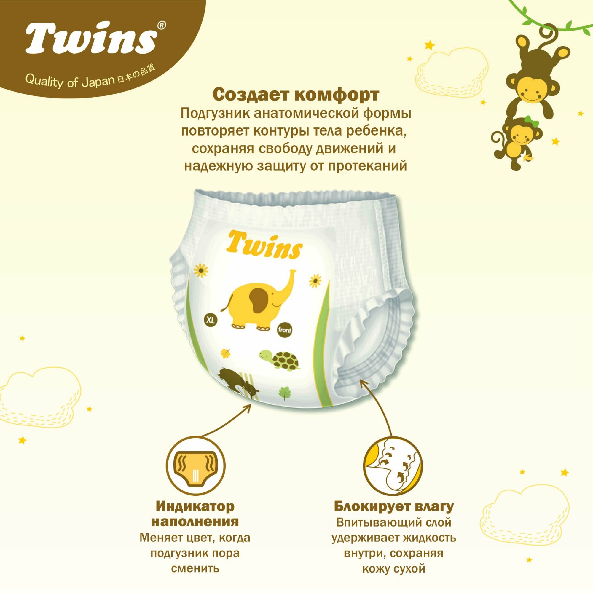 Подгузники-трусики Twins, размер XL (15-25кг), 44 шт интересное: