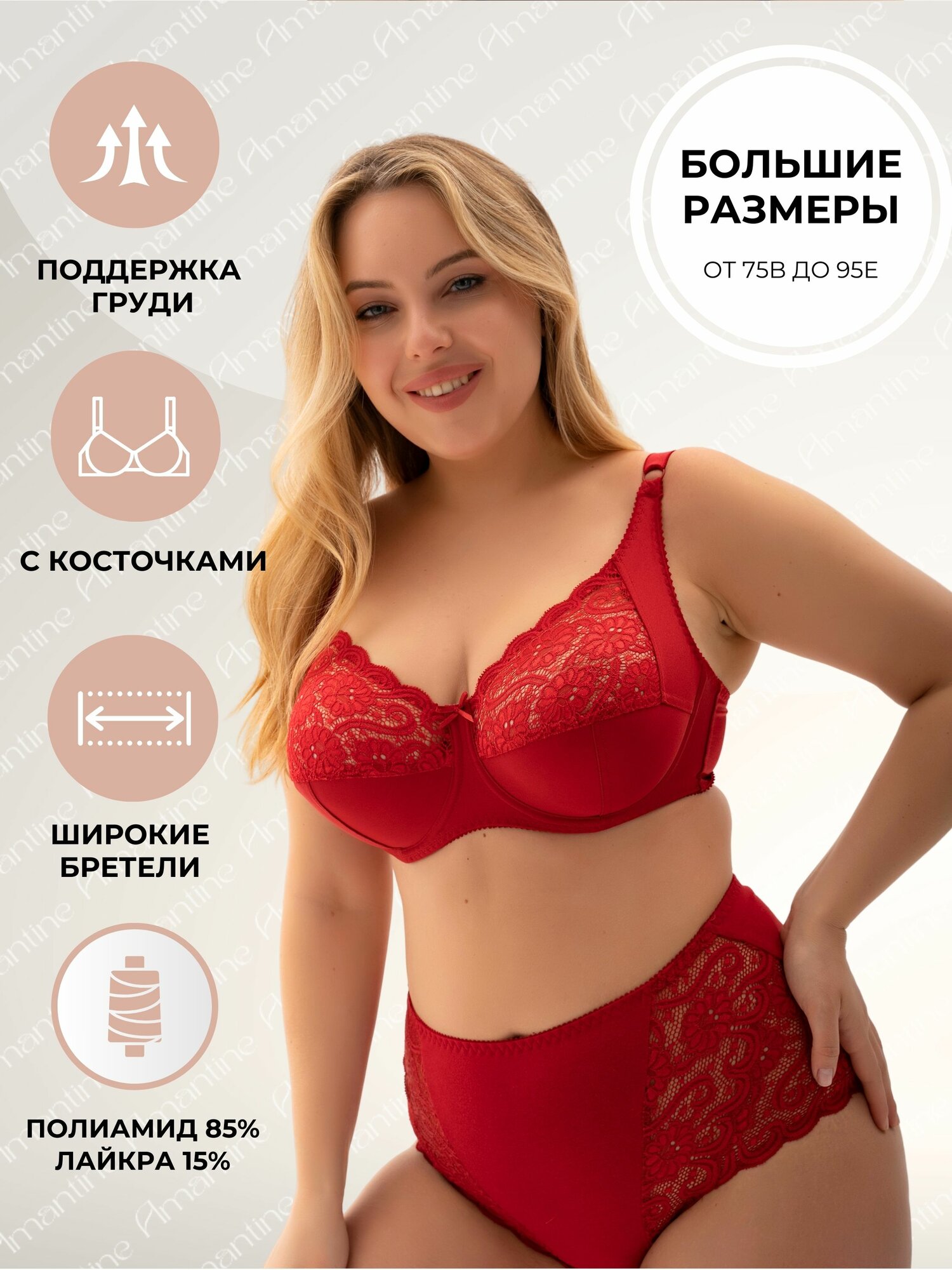 | Особенности модели | кружево / несъемные бретели / регулировка длины бретелей / трикотаж / широкие бретели |