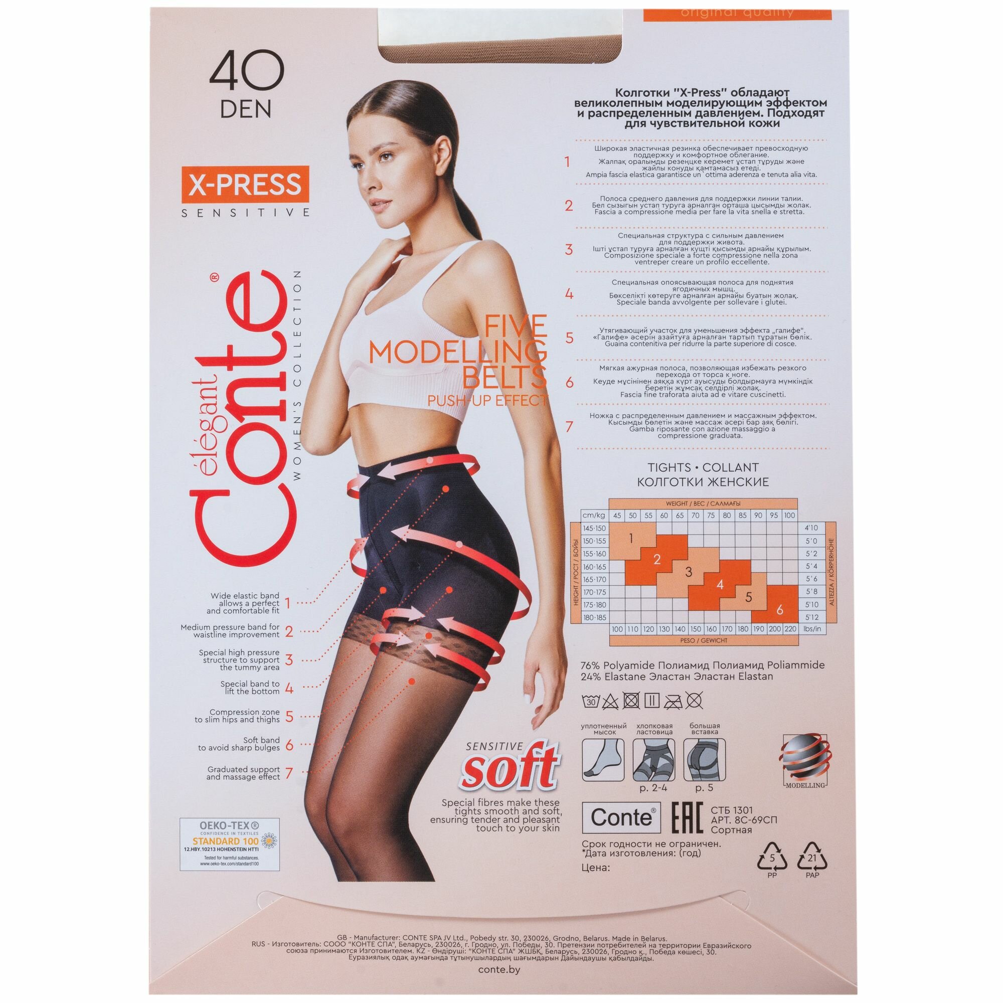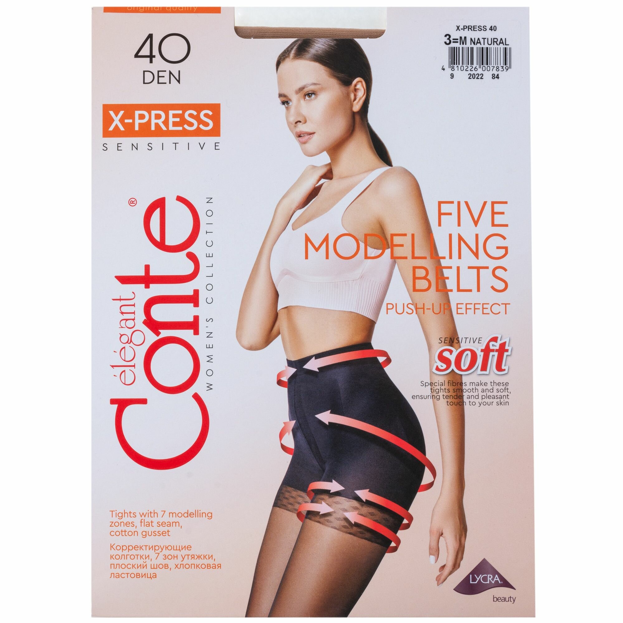 Колготки женские, утяжка с эффектом Push Up, Conte X-Press 40 den, LYCRA®, размер 5=XL с большой вставкой сзади, цвет Natural=Телесный тёплый
