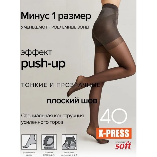 Колготки женские, утяжка с эффектом Push Up, Conte X-Press 40 den, х/б ластовица, LYCRA®, размер 2=S, цвет Shade=Тёмно-бежевый с оттенком серого