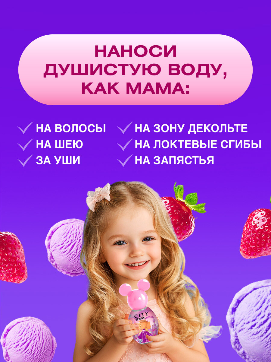 City Funny Princess ,Сити Фани Принцесса, душистая вода, духи для девочек, мороженое, пломбир, клубника, ваниль, интересное: