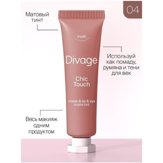 DIVAGE Кремовый тинт для щек, губ и глаз Chic Touch Matte Tint, 11 г, 04