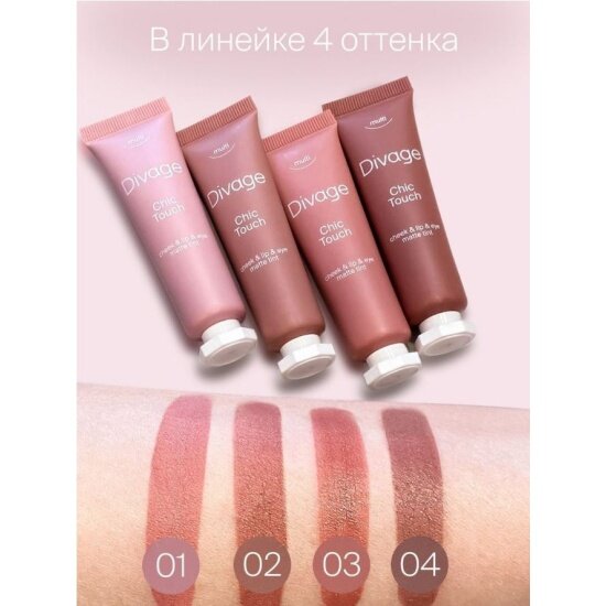 Divage Кремовый тинт для щек, губ и глаз Chic Touch Matte Tint тон 01