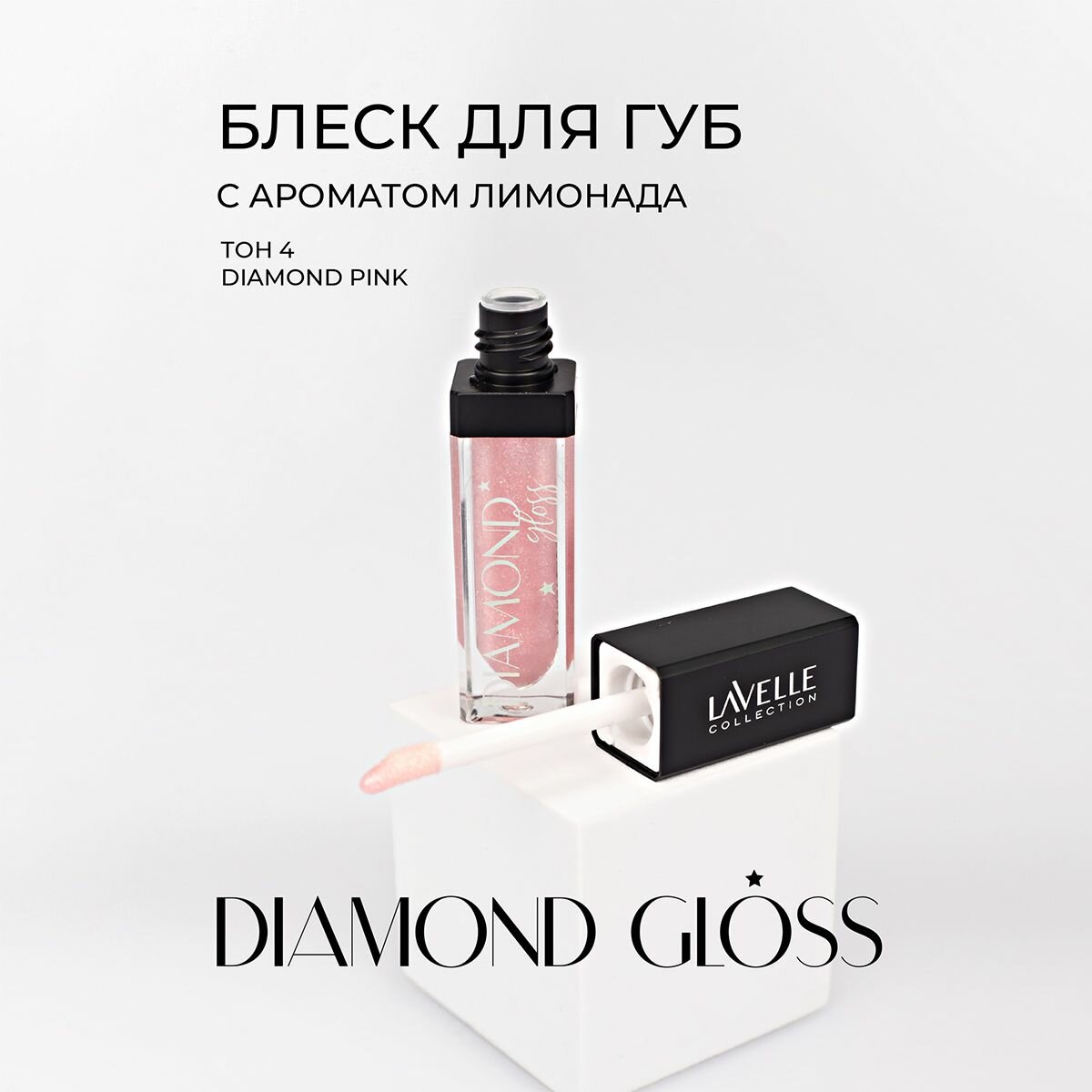 Блеск для губ Lavelle Collection глянцевый Diamond Gloss, тон 04 diamond pink/ алмаз розовый