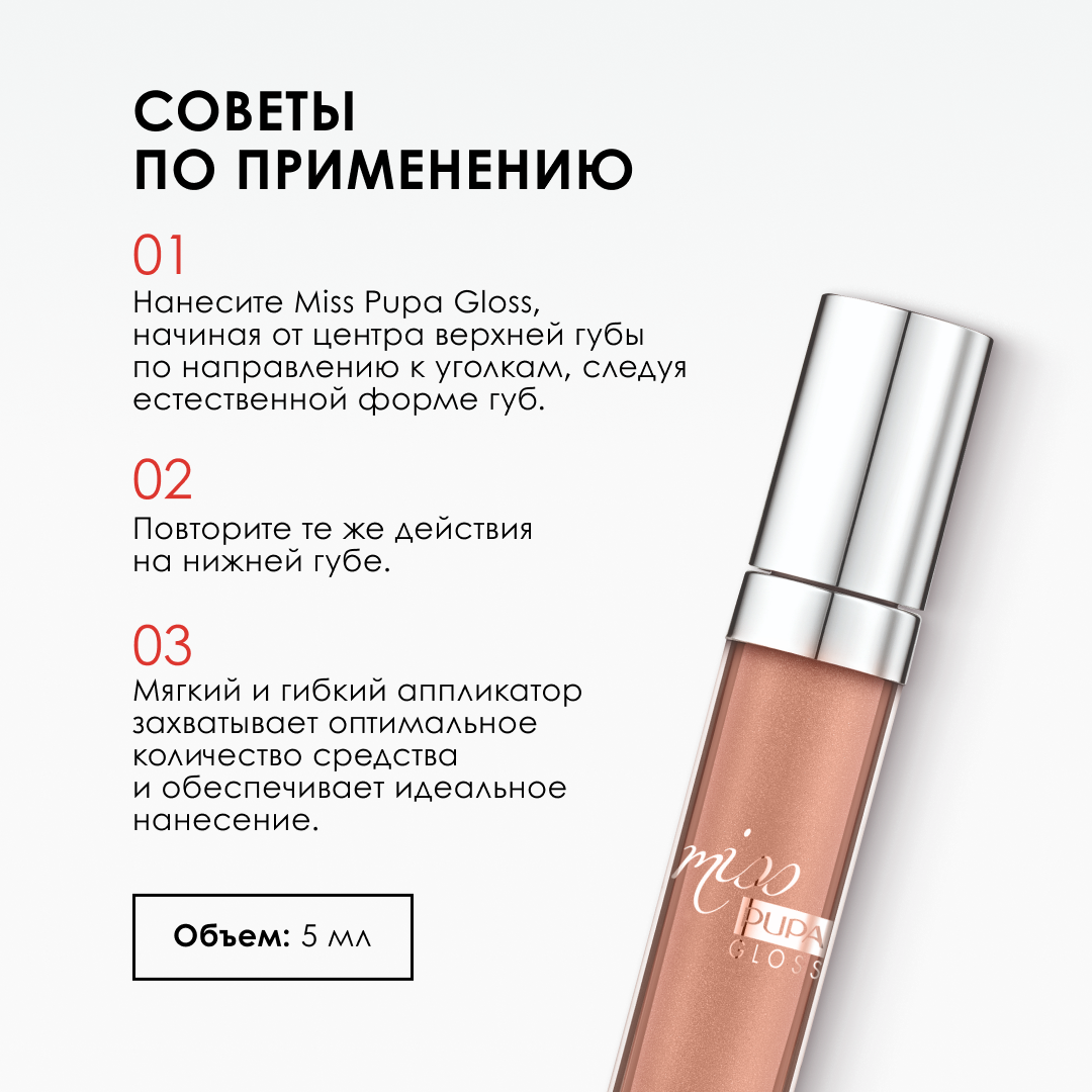 PUPA Блеск для губ Miss Pupa Gloss, 5 мл, 102