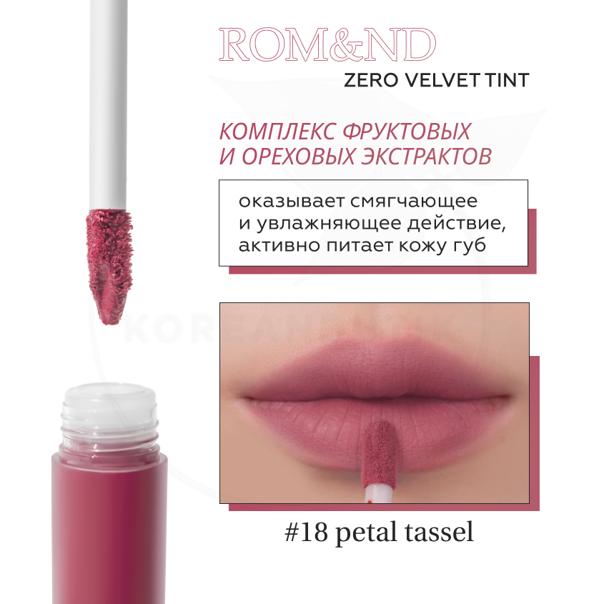 СохранитьТинт бархатный для губ | ROM&ND Zero Velvet Tint 18 Petal Tassel интересное: