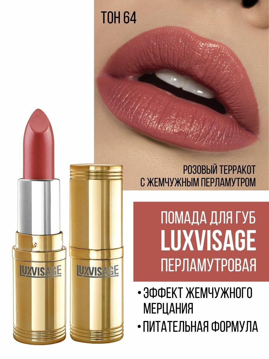 Купить LUXVISAGE помада для губ перламутровая с глянцевым блеском, оттенок 64 розовый терракот с жемчужным перламутром