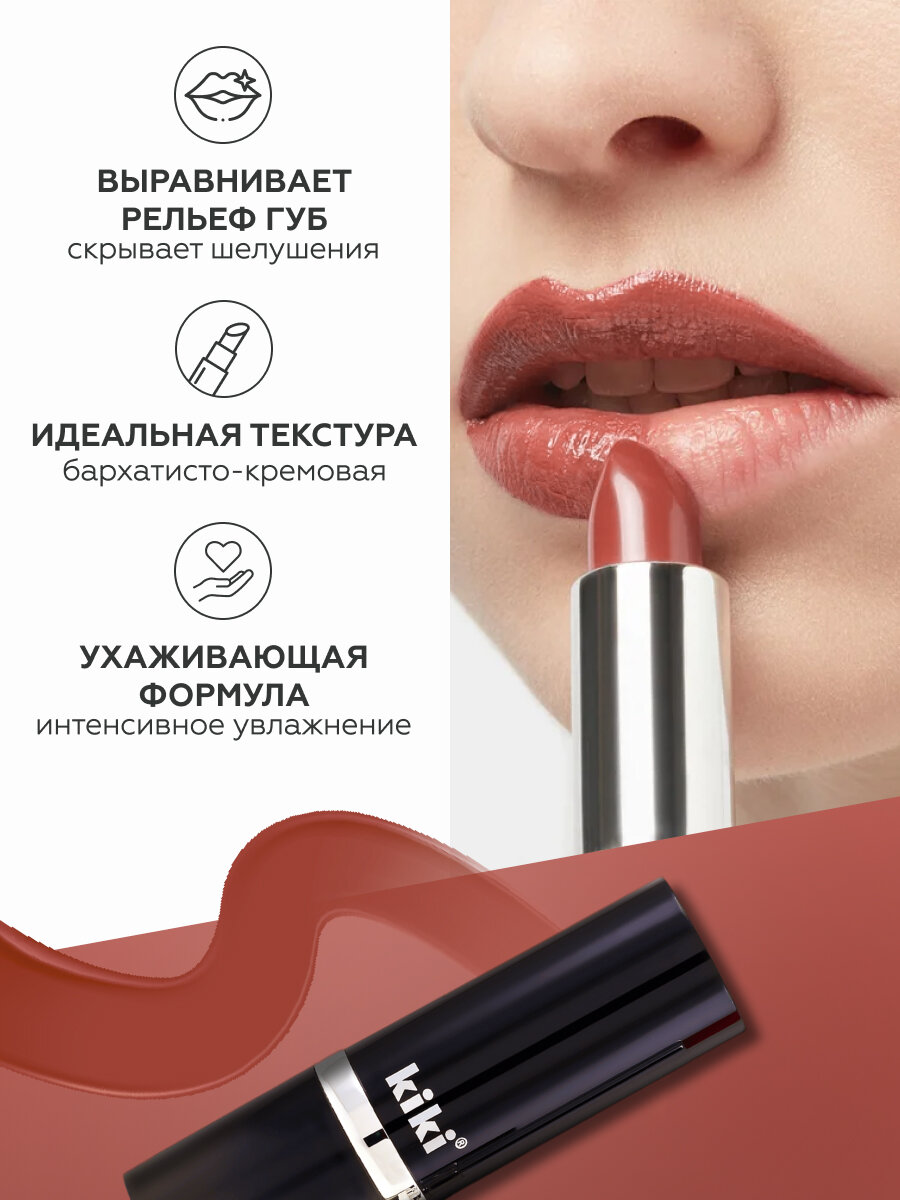 Губная помада kiki VELVET, тон 802, медный нюд, кремовая текстура, увлажняющая, стойкая, стик