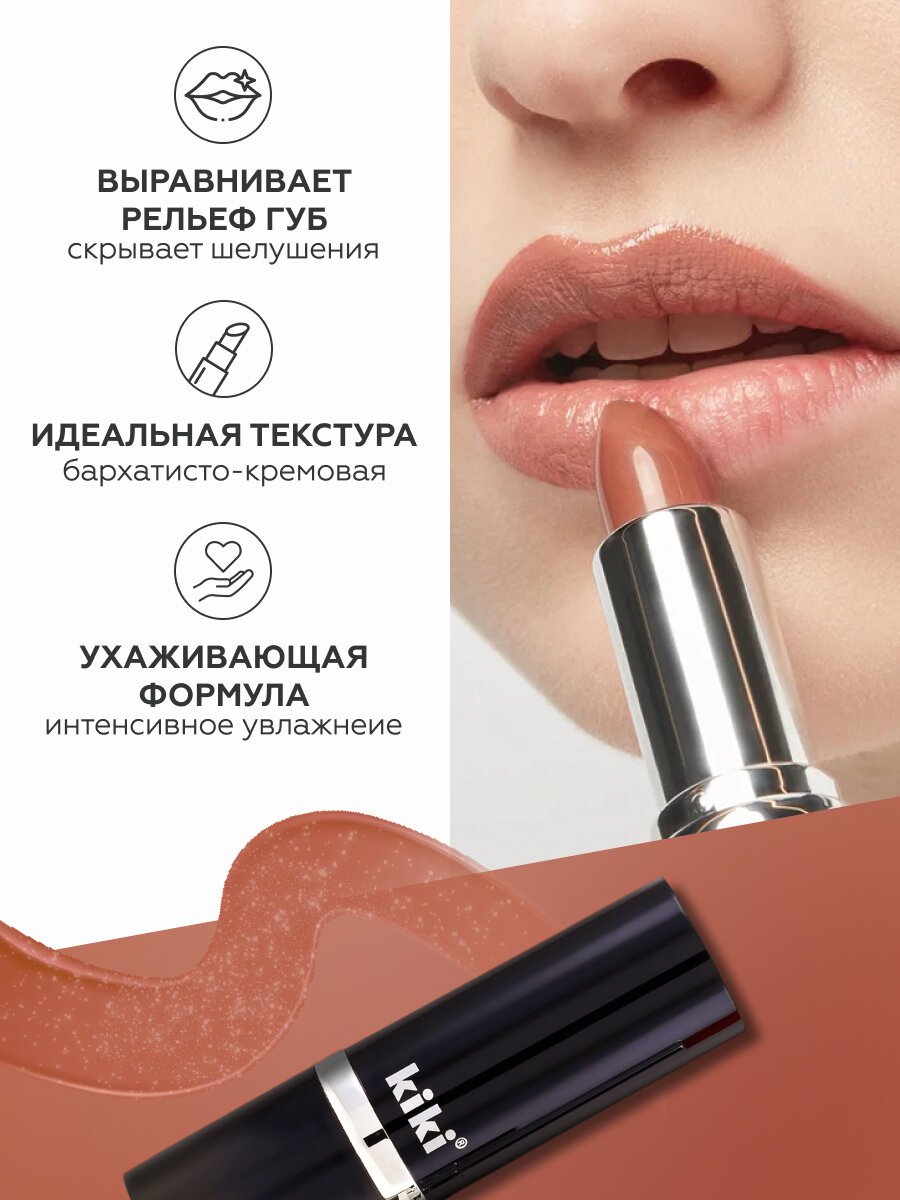 Губная помада kiki VELVET, тон 802, медный нюд, кремовая текстура, увлажняющая, стойкая, стик