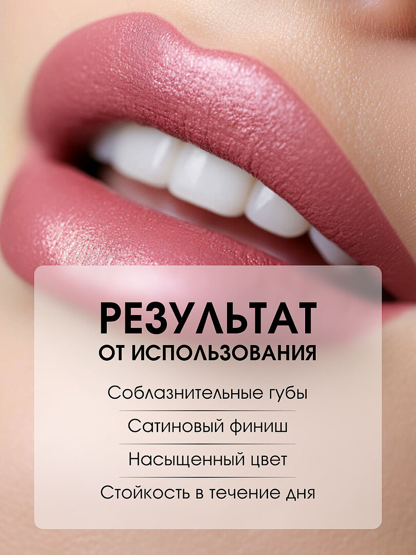 | Дополнительная информация | Матовое покрытие, насыщенный стойкий цвет. Легко наносится, придает губам мягкость и бархатистость, сияющий блеск и ощущение комфорта. Увлажнение губ в течение всего дня. |
