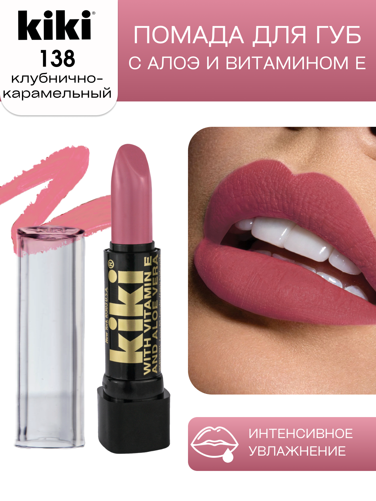 Помада для губ kiki с aloe & vit E тон 138 клубнично-карамельный стойкая увлажняющая глянцевая, кики