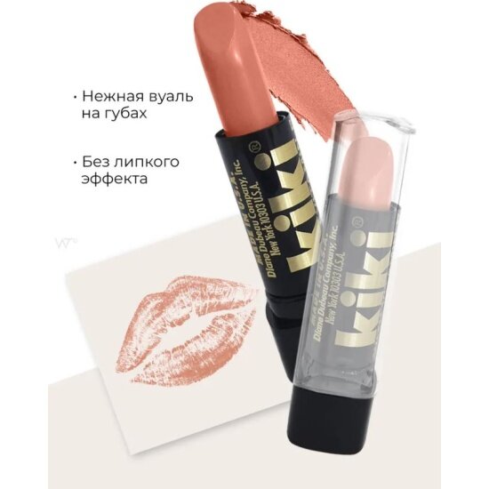 | Дополнительная информация | в состав классической губной помады KIKI введены группы витаминов и масел, которые защищают, разглаживают, смягчают губы и усиливают передачу глубины цвета; активный ингредиент: витамин E; масла и экстракты: масло алоэ вера |