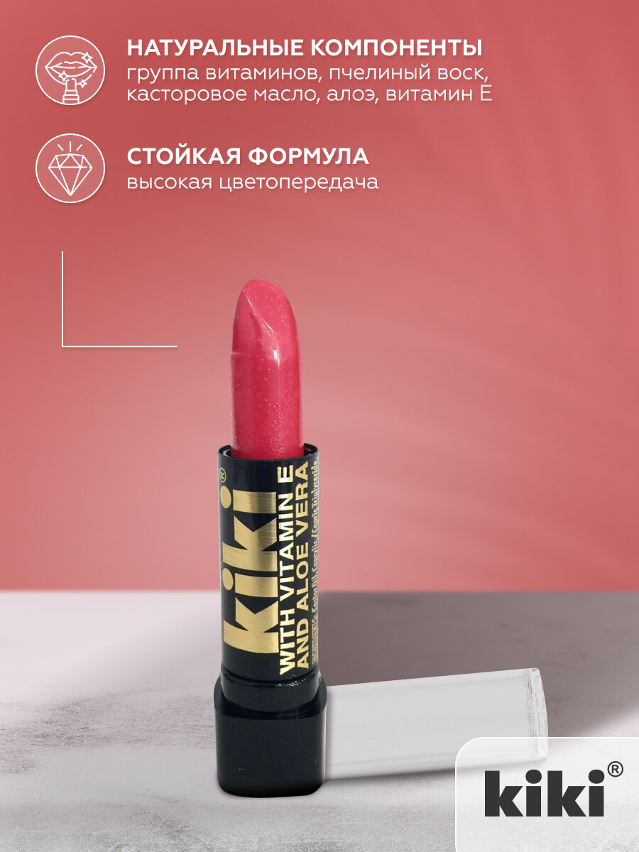 Помада для губ kiki с aloe & vit E тон 131 нежно-малиновый стойкая увлажняющая глянцевая, кики