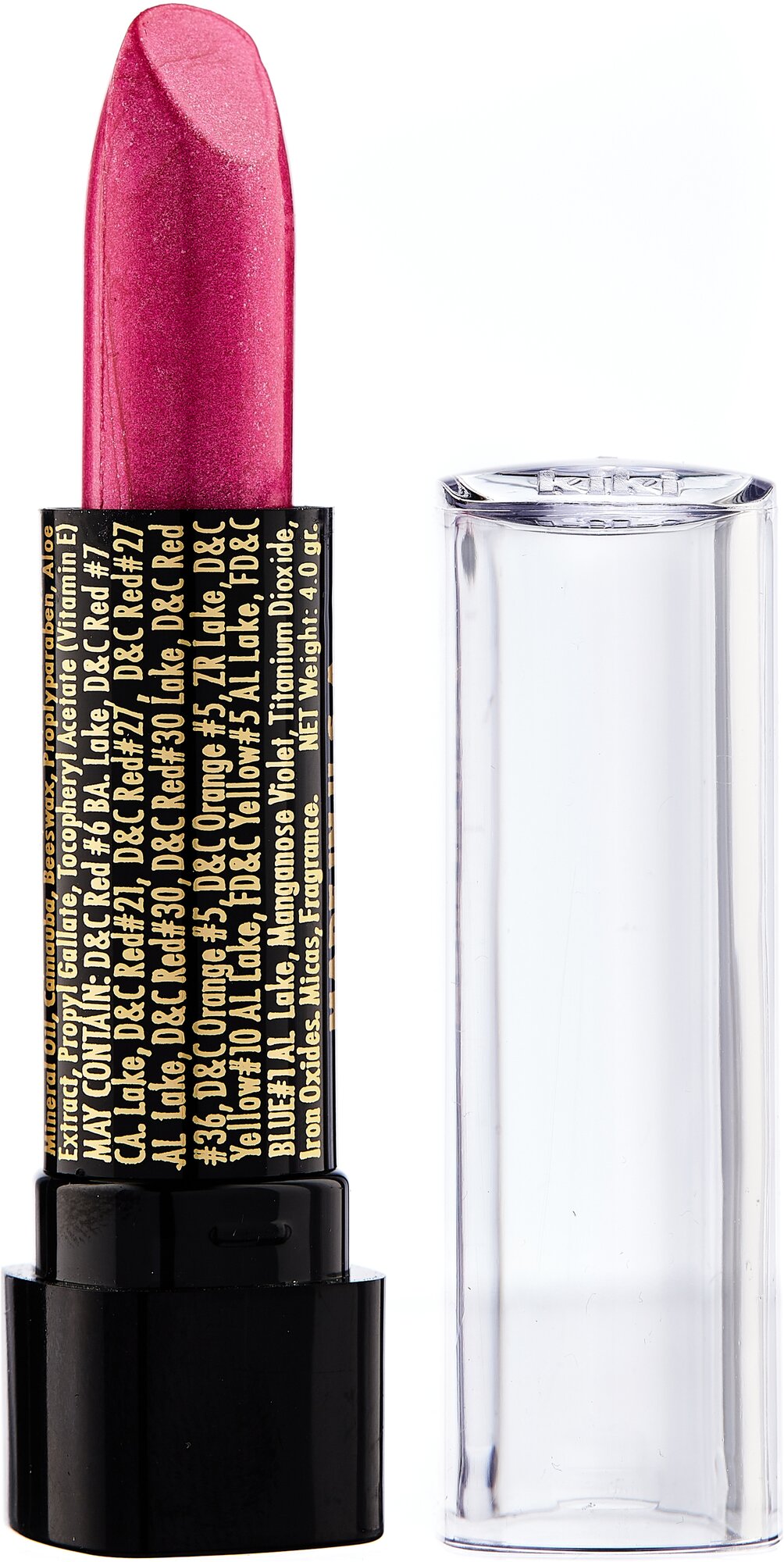 | Дополнительная информация | в состав классической губной помады KIKI введены группы витаминов и масел, которые защищают, разглаживают, смягчают губы и усиливают передачу глубины цвета; активный ингредиент: витамин E; масла и экстракты: масло алоэ вера |