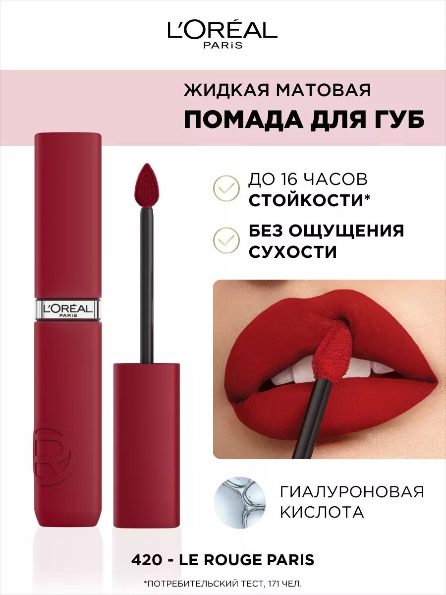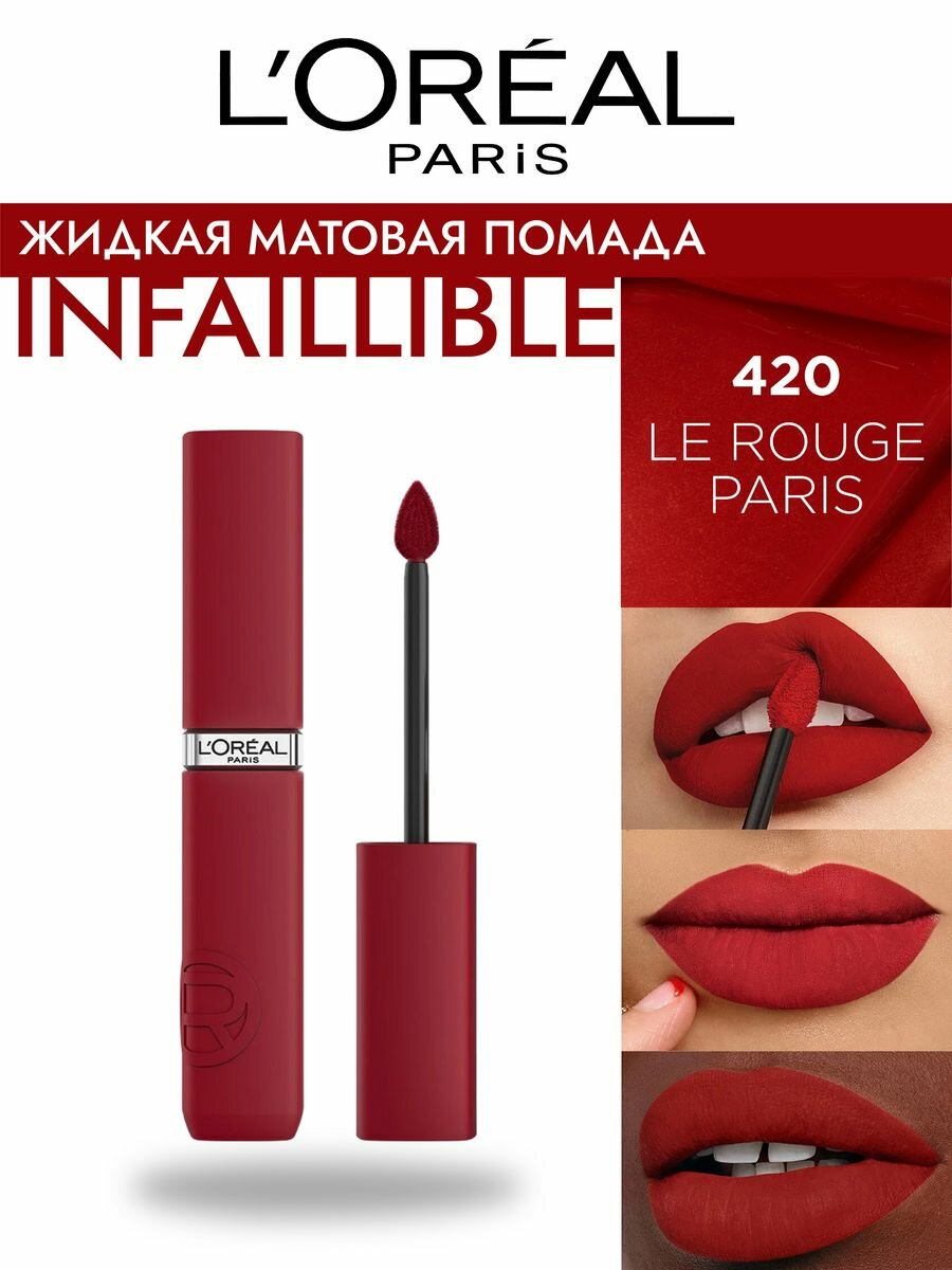 Купить L'OREAL Помада для губ Infaillible жидкая матовая, 5 мл, 420 La Rouge Paris