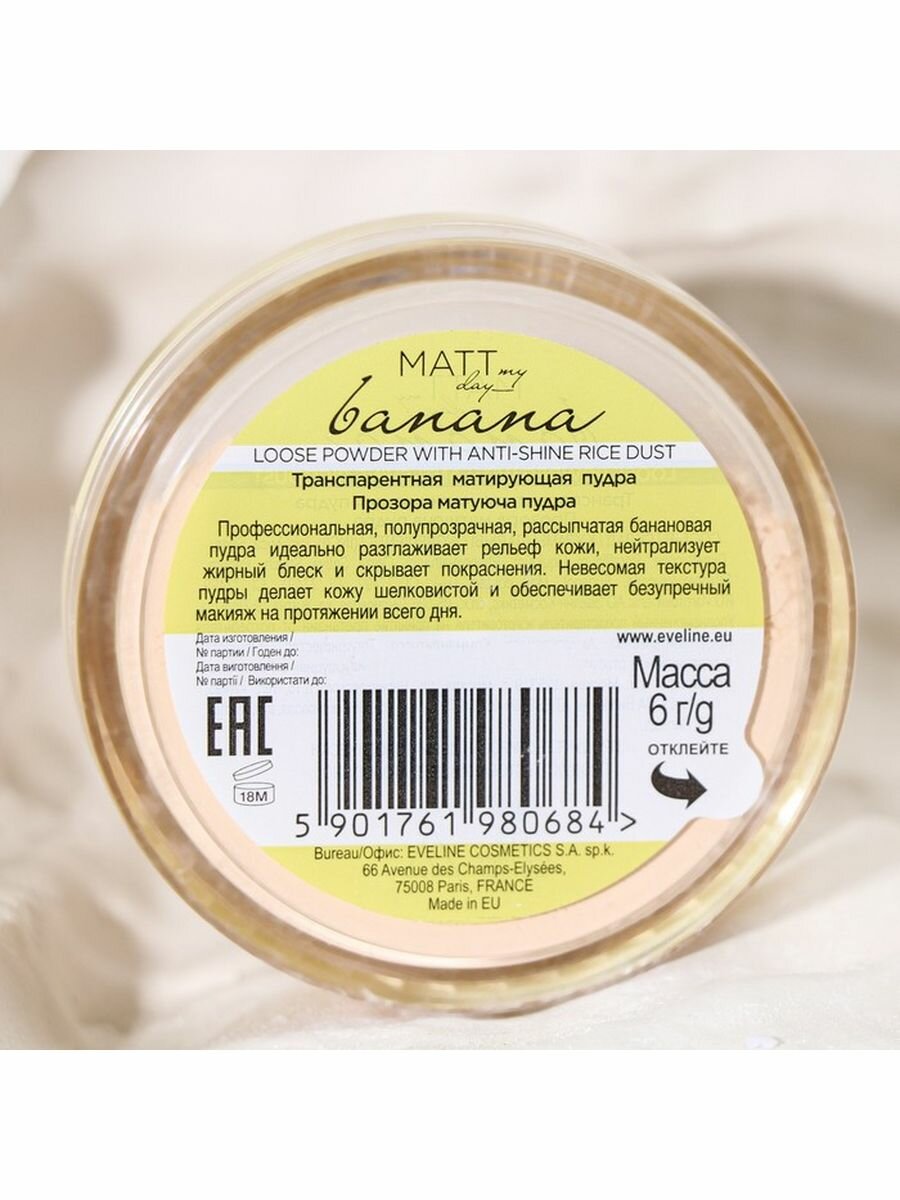 Пудра для лица MATT MY DAY LOOSE POWDER рассыпчатая матирующая транспарентная BANANA, универсальный оттенок, 6 г