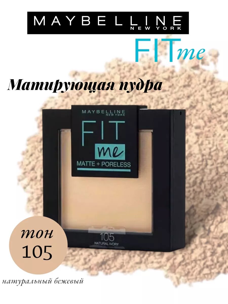 Maybelline New York пудра матирующая Fit Me №105 Натурально-бежевый