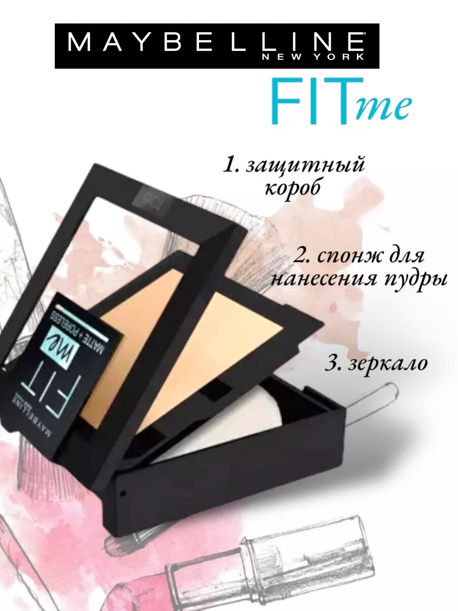 Купить Maybelline New York Fit Me Пудра матирующая тон 105 Натурально-бежевый