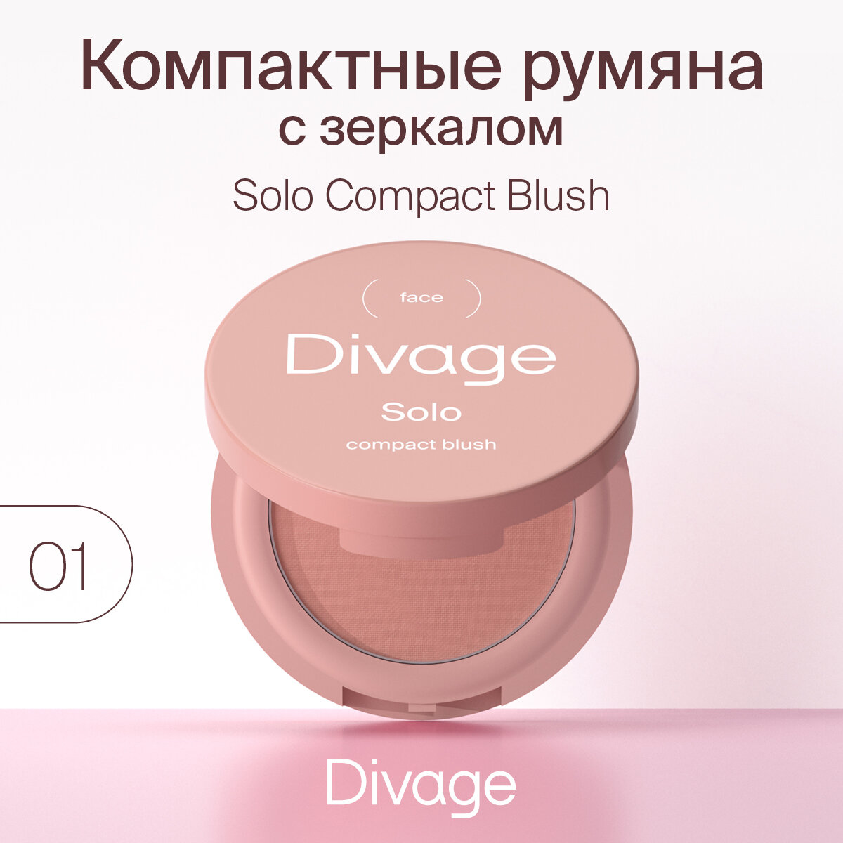 Divage Румяна для лица компактные Solo Compact Blush, Тон 01 розовые