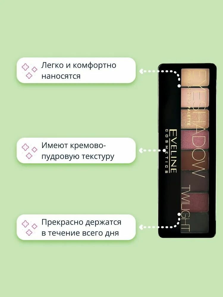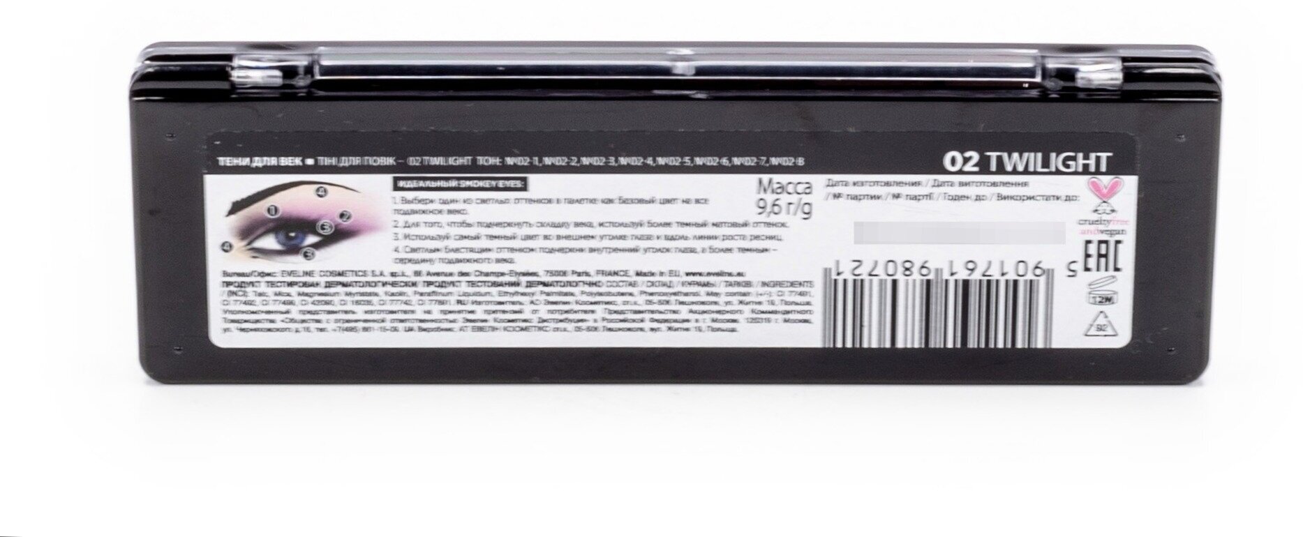 Тени для век EVELINE EYESHADOW PROFESSIONAL PALETTE палетка №02-TWILIGHT (8 тонов), 9,6 гр
