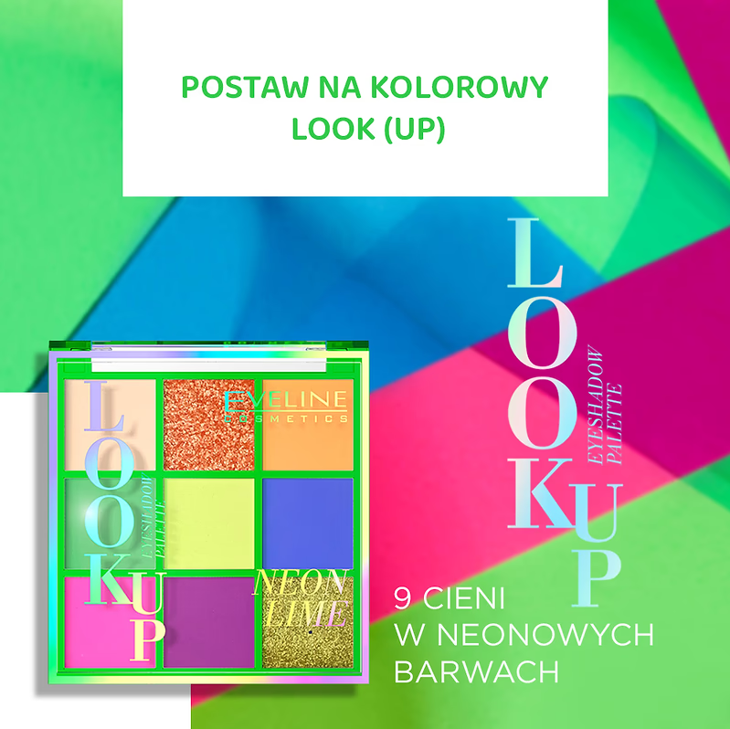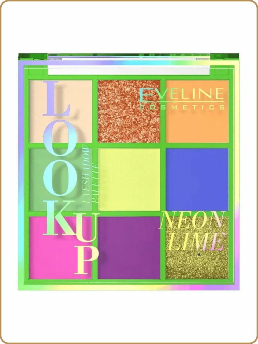 Тени для век EVELINE LOOK UP NEON LIME 10 неоновые палетка матовые шиммер ,8г