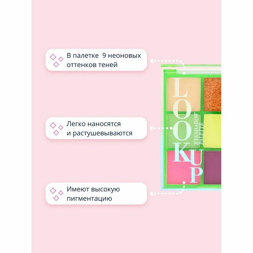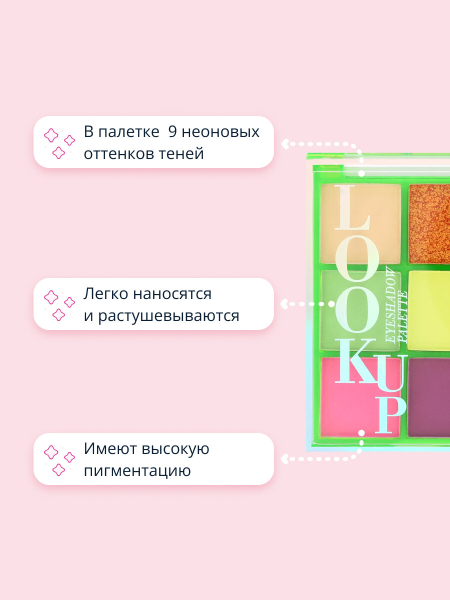Тени для век неоновые палетка матовые шиммер LOOK UP NEON LIME 10,8г