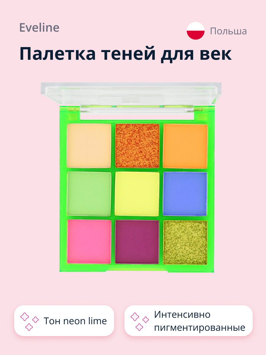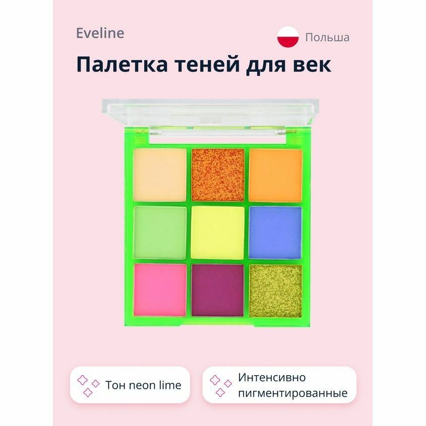 Палетка теней для век EVELINE NEON LIME