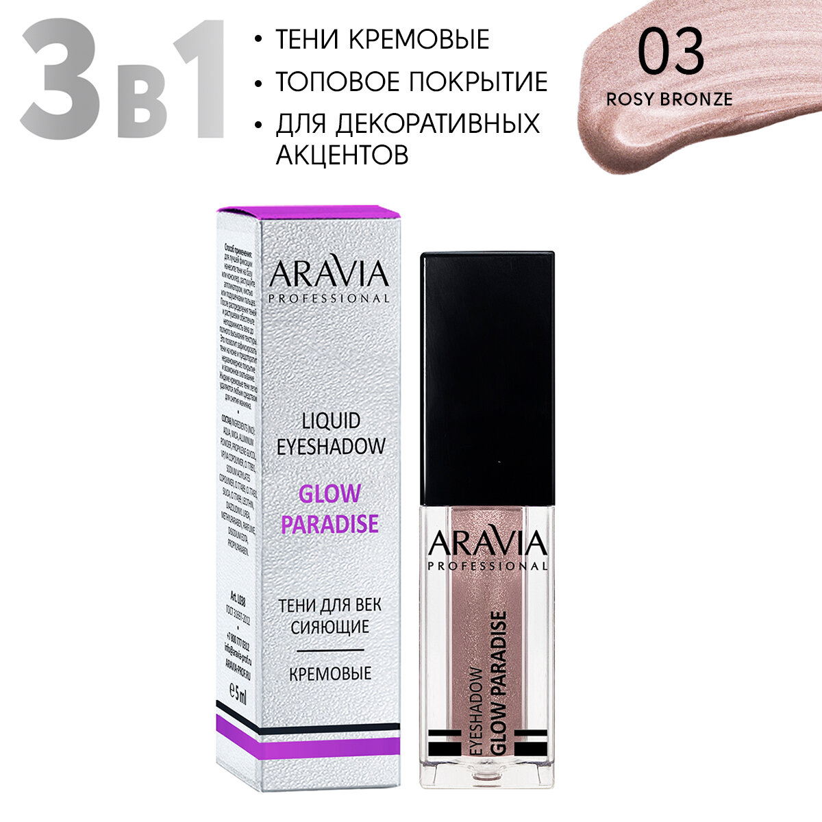 СохранитьARAVIA Тени для век жидкие сияющие Glow Paradise, оттенок розовая бронза 03 rosy bronze, 5мл интересное: