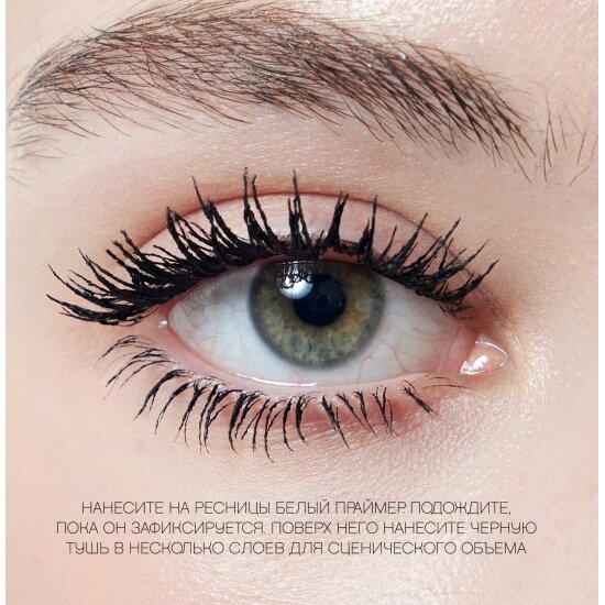 | Способ применения | Нанесите на ресницы белый праймер. Подождите 3-5 секунд, пока он зафиксируется. Поверх него нанесите черную тушь в несколько слоев для сценического объема. |