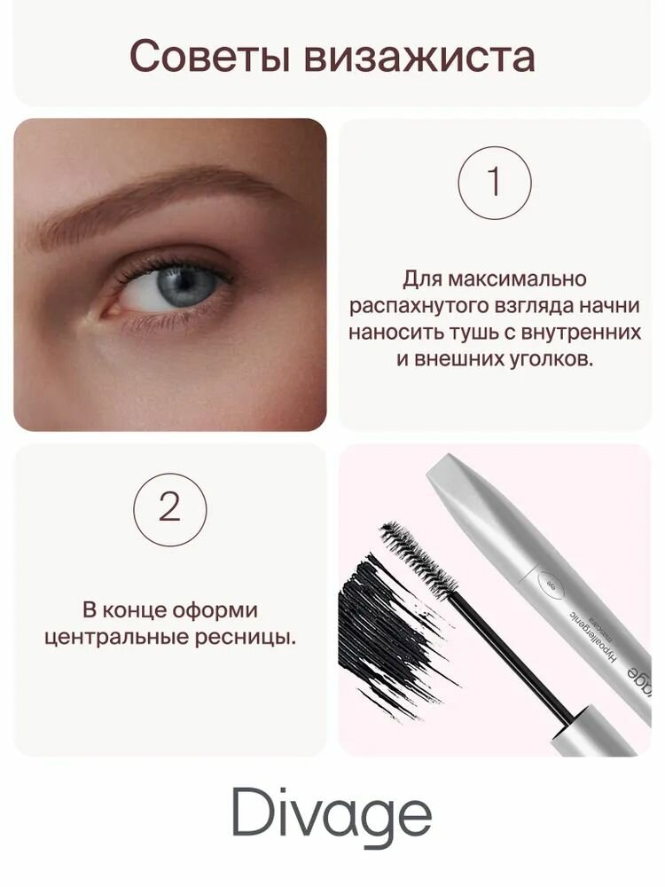 | Способ применения | для максимально распахнутого взгляда начни наносить тушь с внутренних и внешних уголков, а в конце оформи центральные ресницы |