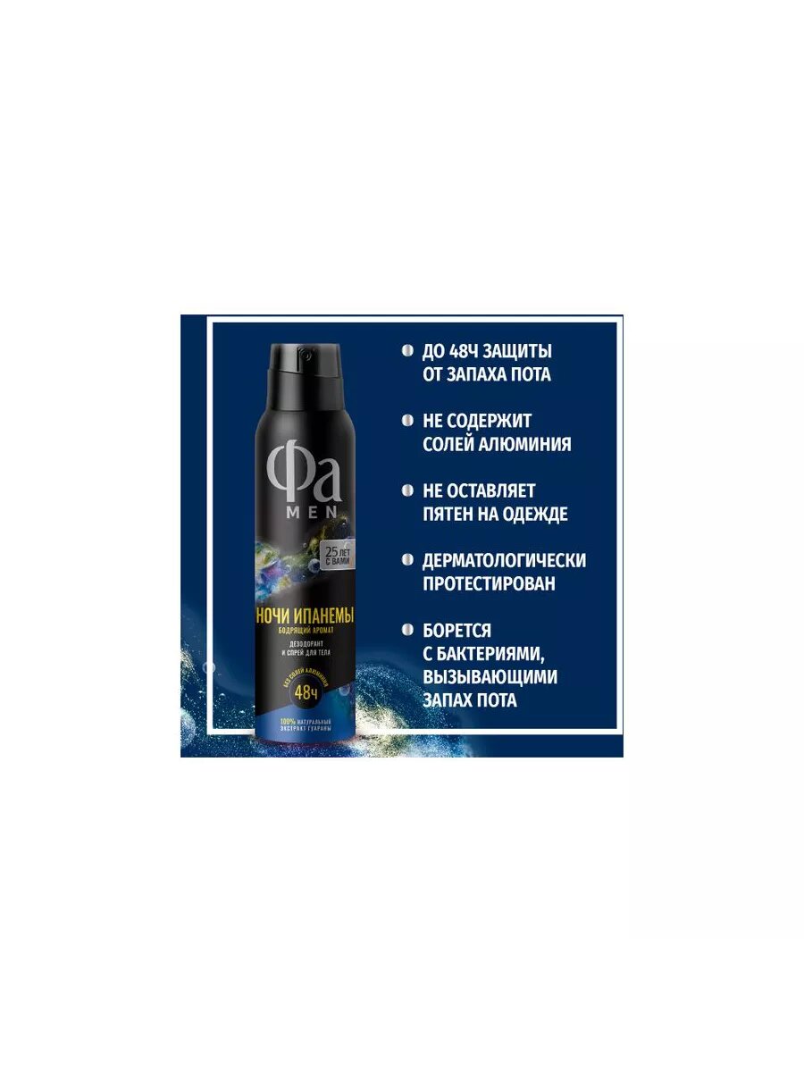 Фа MEN дезодорант мужской спрей для тела Ночи Ипанемы, 150 мл