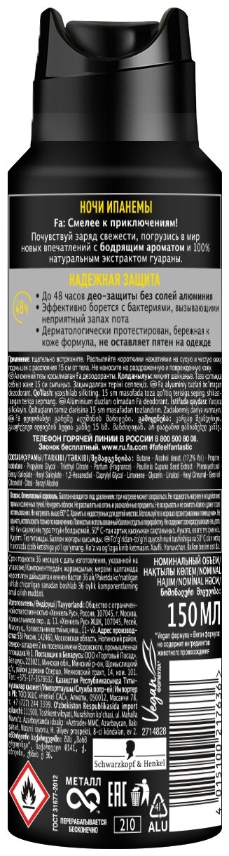 Дезодорант-аэрозоль Fa Men «Ночи Ипанемы», 150 мл