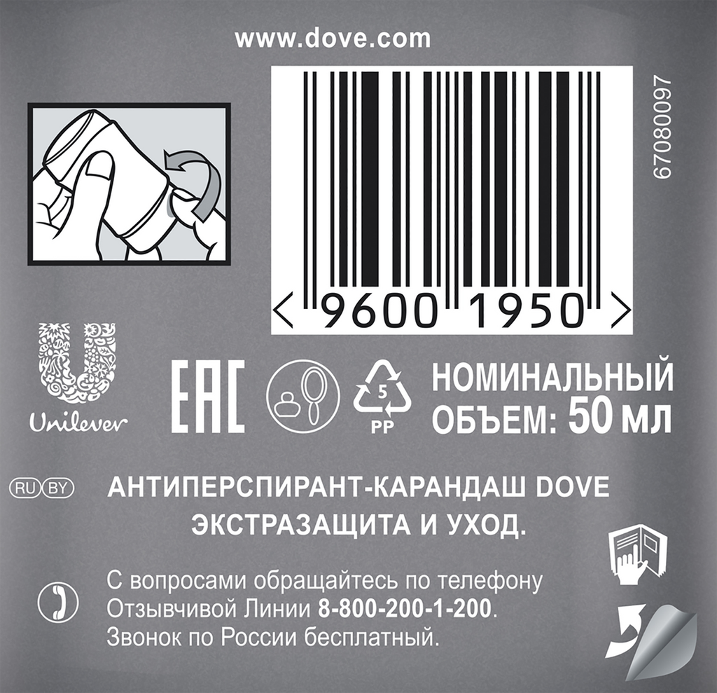 Антиперспирант-карандаш Dove Men+Care Экстразащита и уход, 50 мл, 1 шт