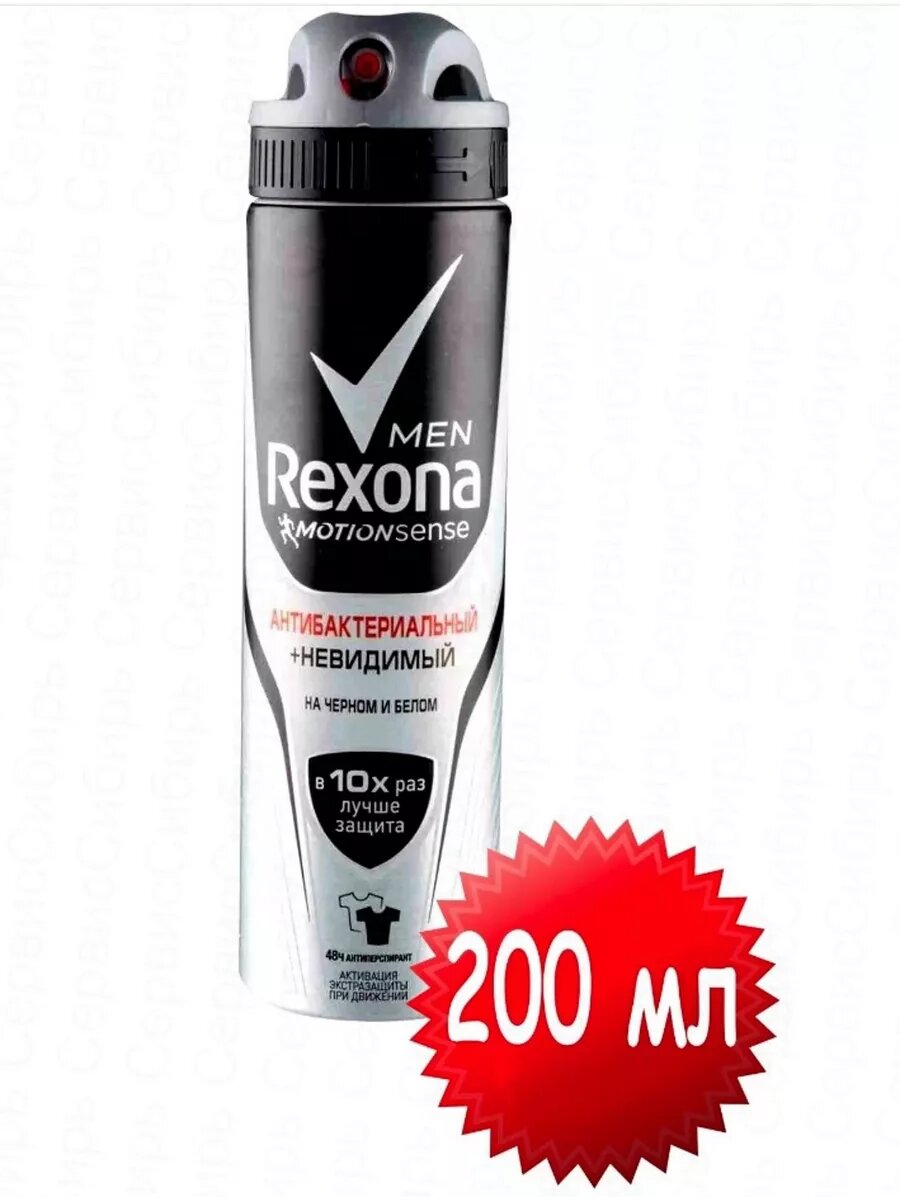 Rexona Дезодорант-спрей Men Антибактериальный, невидимый на чёрном и белом, 150 мл/