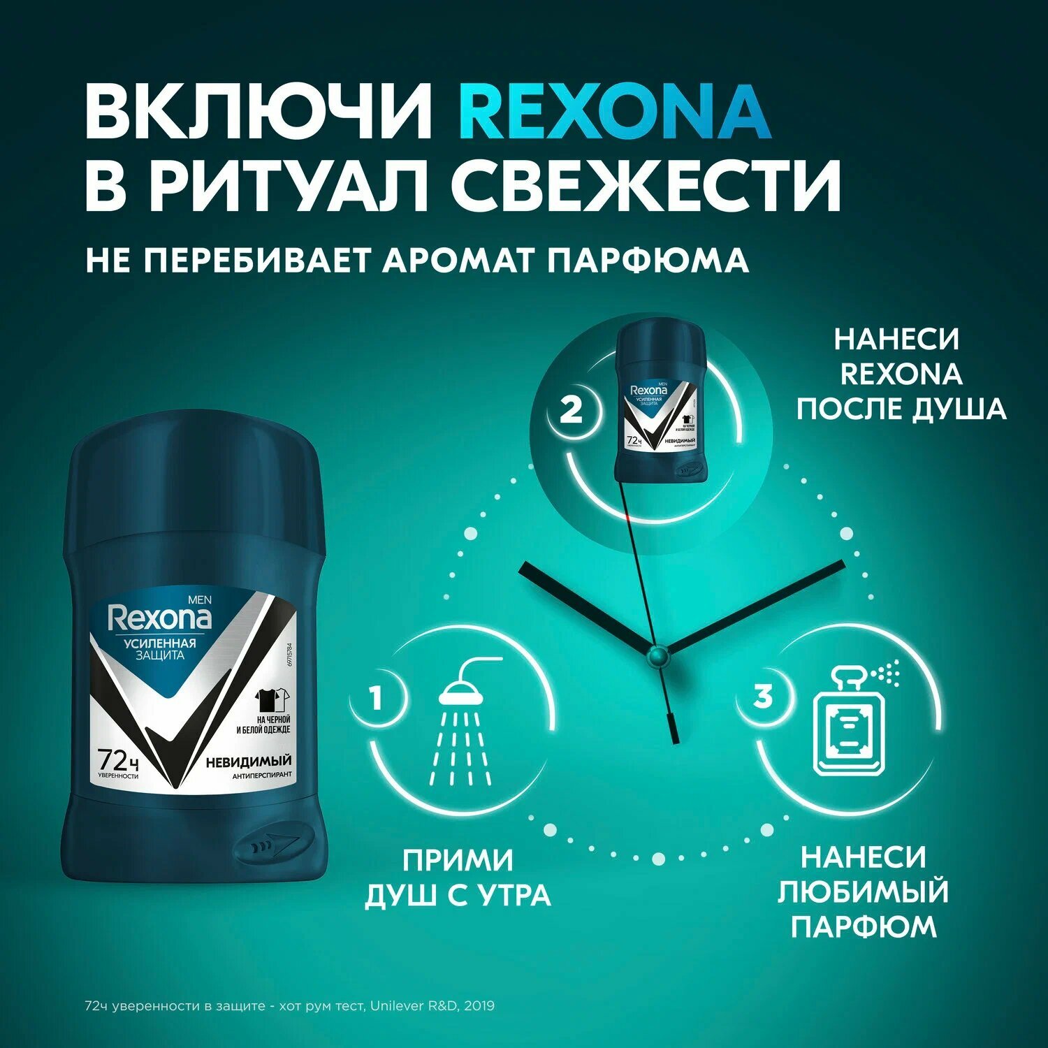 Rexona Дезодорант антиперспирант-карандаш for men Невидимый на черной и белой одежде, 50 мл, 2 шт.