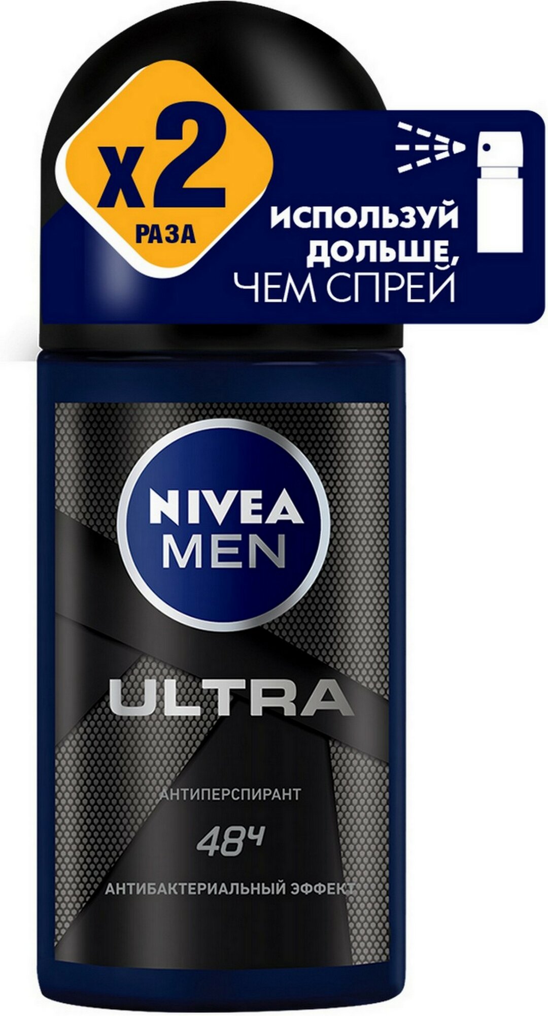 Дезодорант-антиперспирант шариковый NIVEA MEN ULTRA с антибактериальным эффектом, 2 x 50 мл (2 штуки)