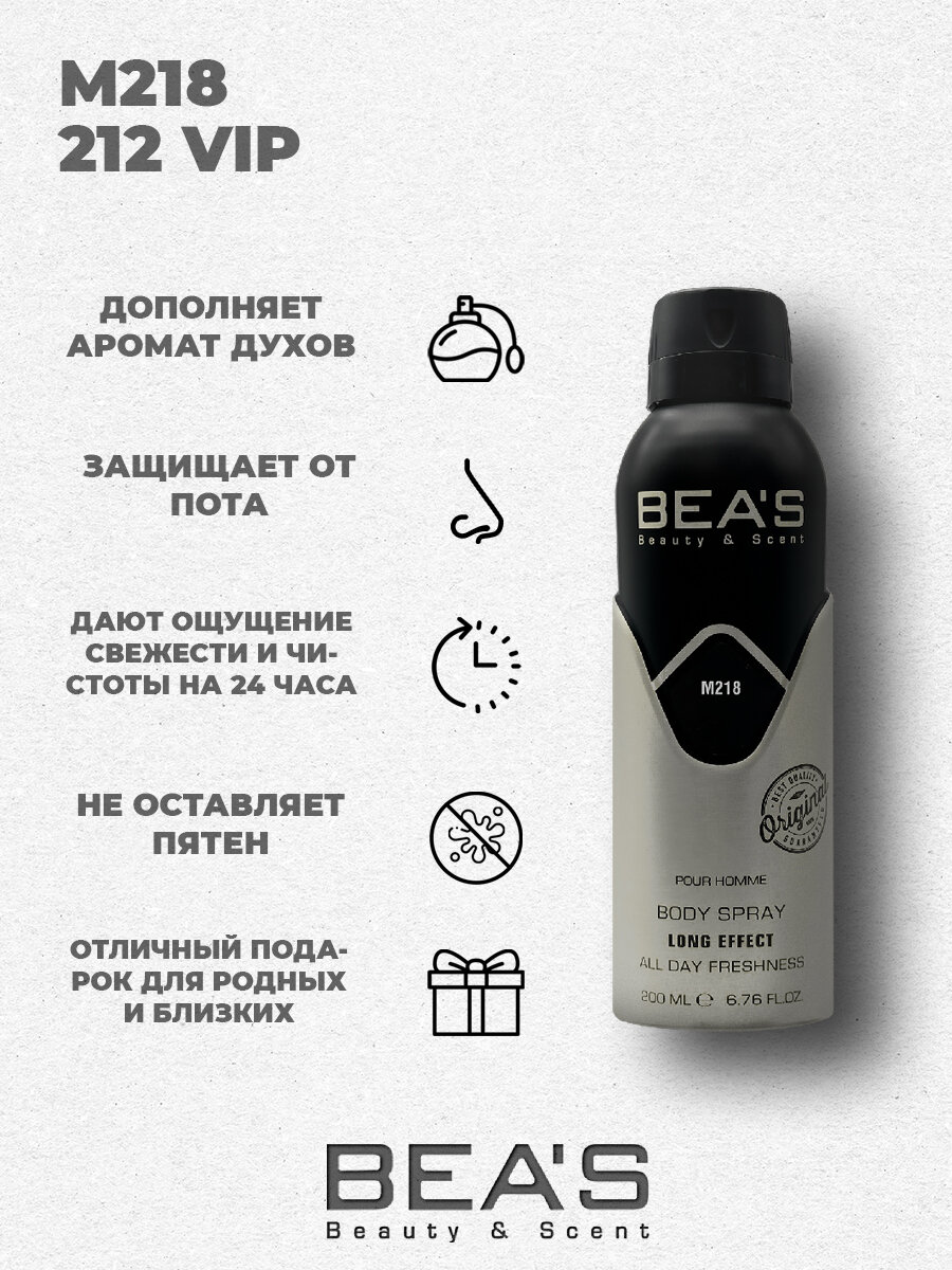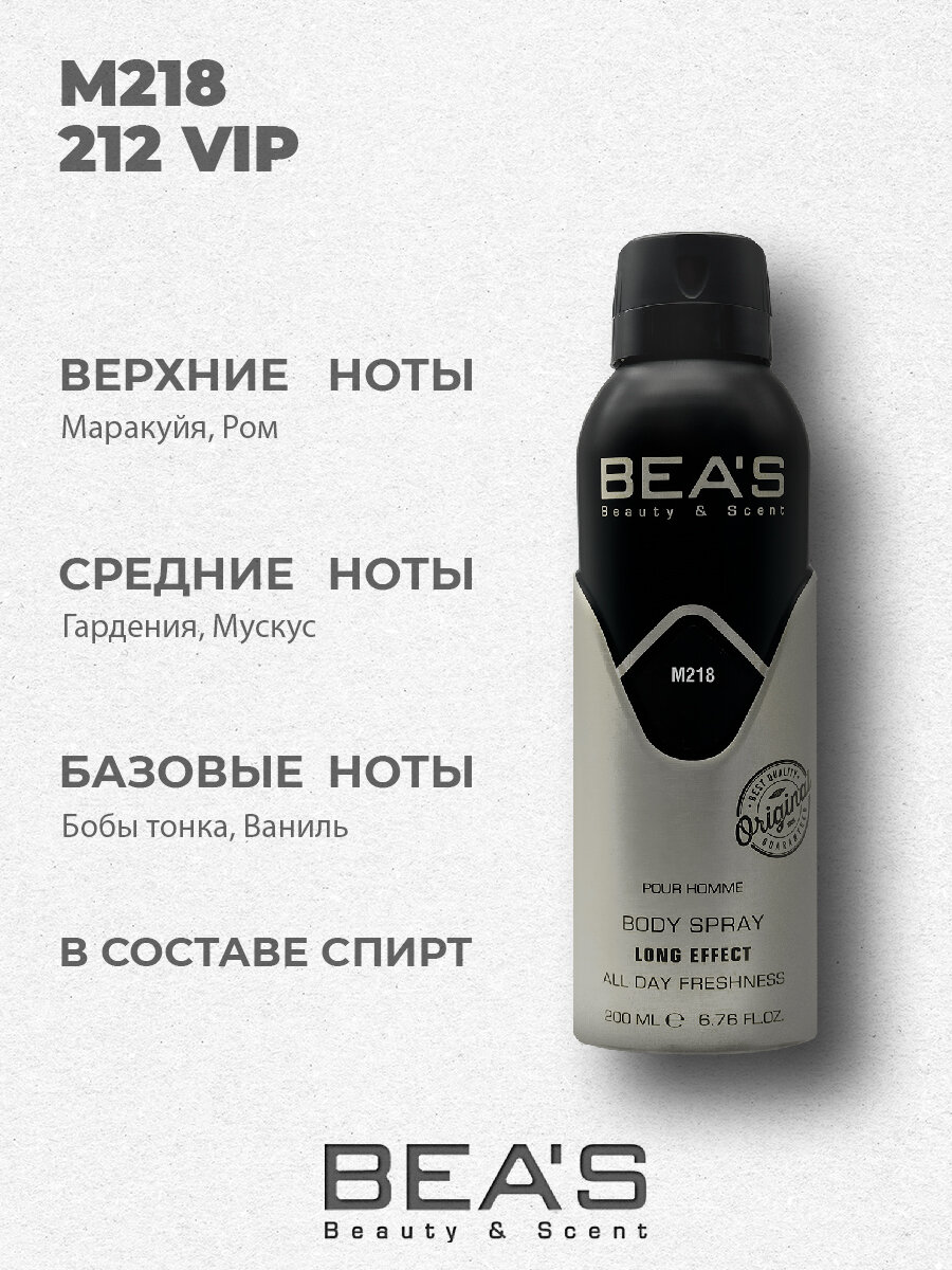 Дезодорант мужской спрей BEAS CH 212 Vip 212 M218 парфюмированный 200 мл интересное: