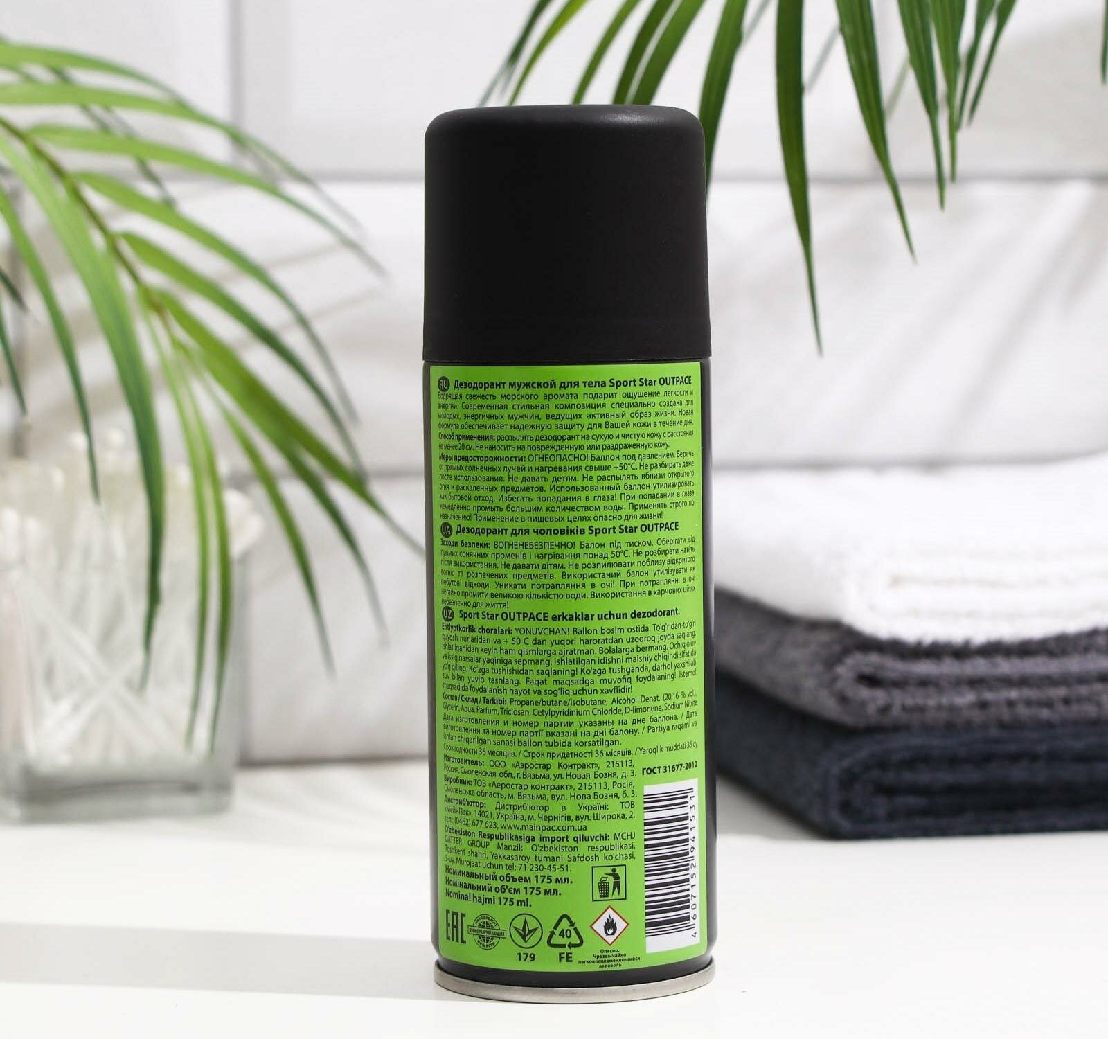 Спорт Стар / Sportstar Men - Дезодорант-спрей для тела Outpace 175 мл интересное:
