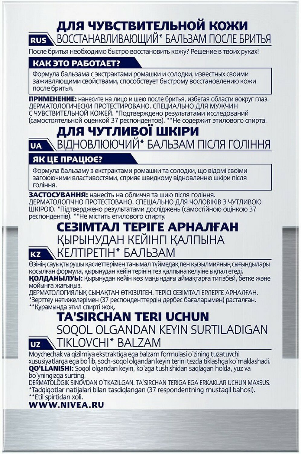 Nivea Men Бальзам после бритья Восстанавливающий для чувствительной кожи, 100 мл , 4 шт
