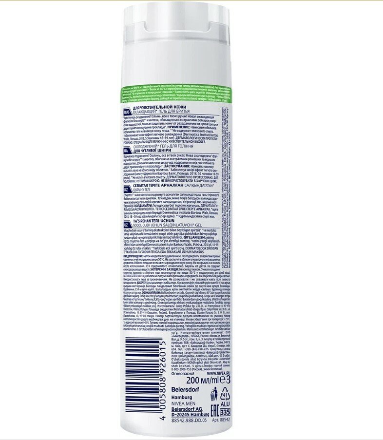 Nivea Гель для бритья Охлаждающий для чувствительной кожи, 200 мл
