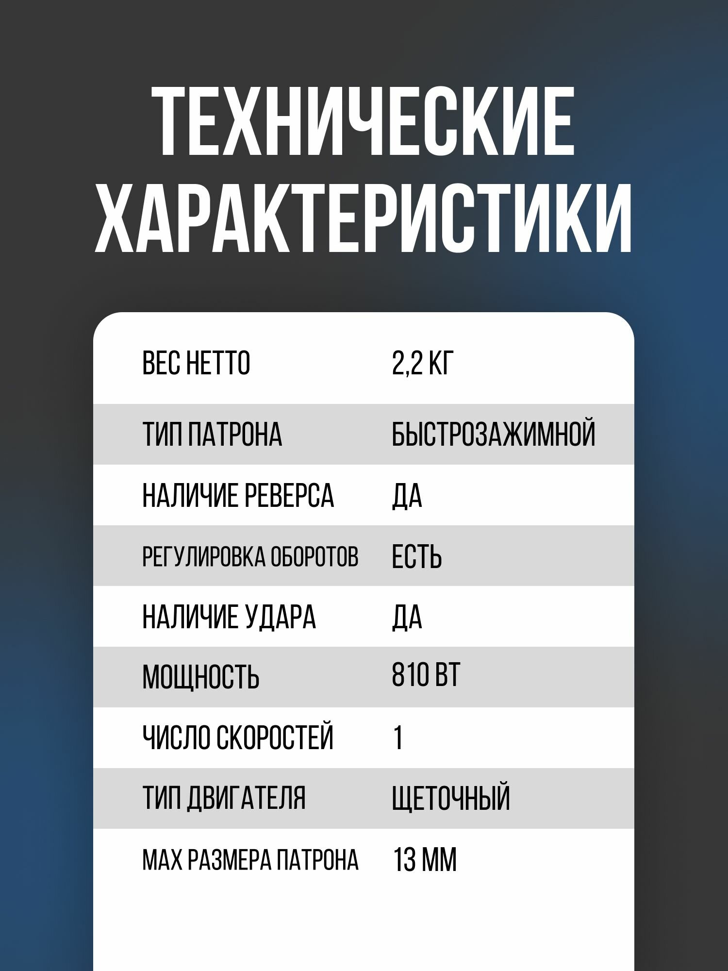 | Диаметр патрона | 13 мм |