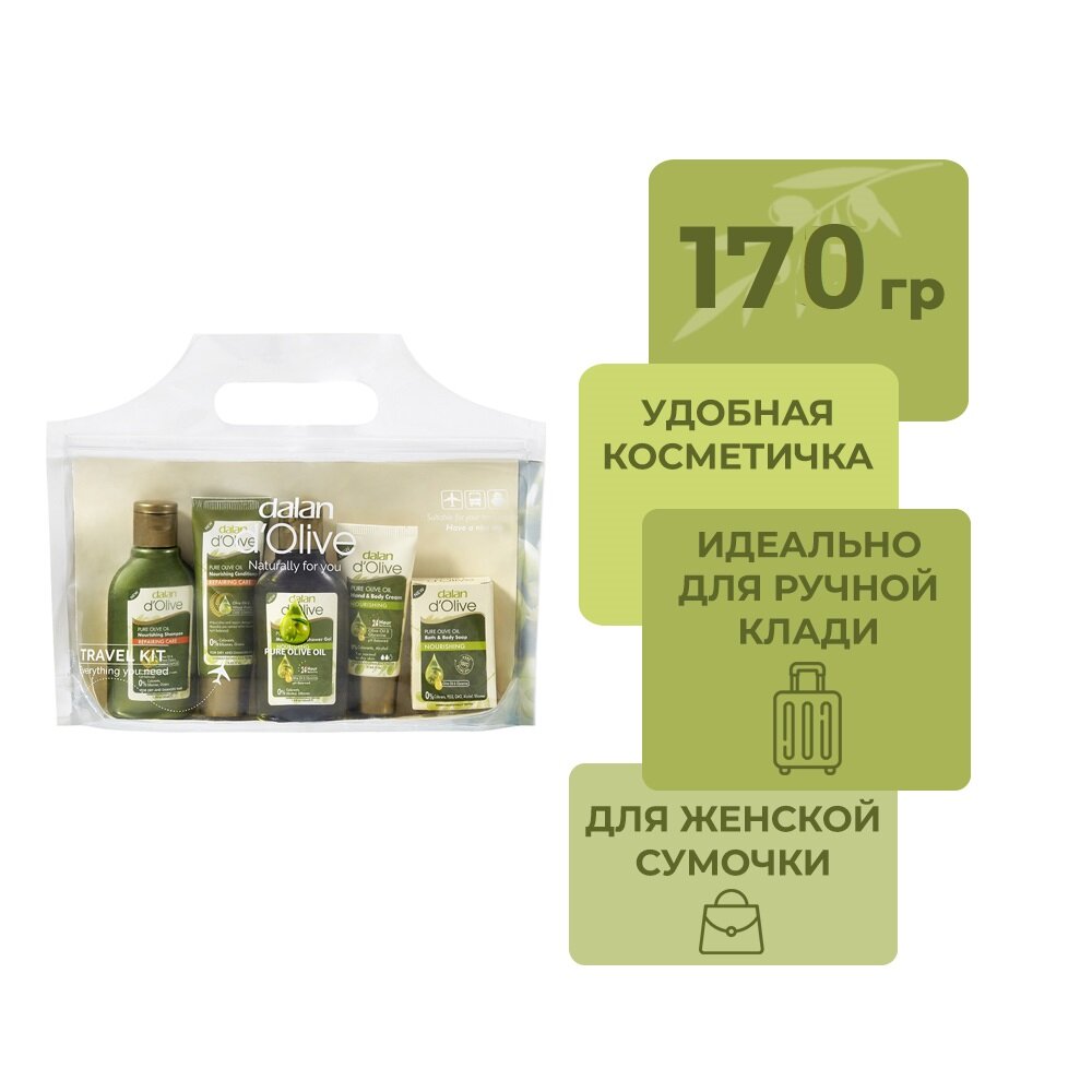 Подарочный дорожный набор Dalan D'Olive турецкой косметики для путешественника 170 гр. интересное: