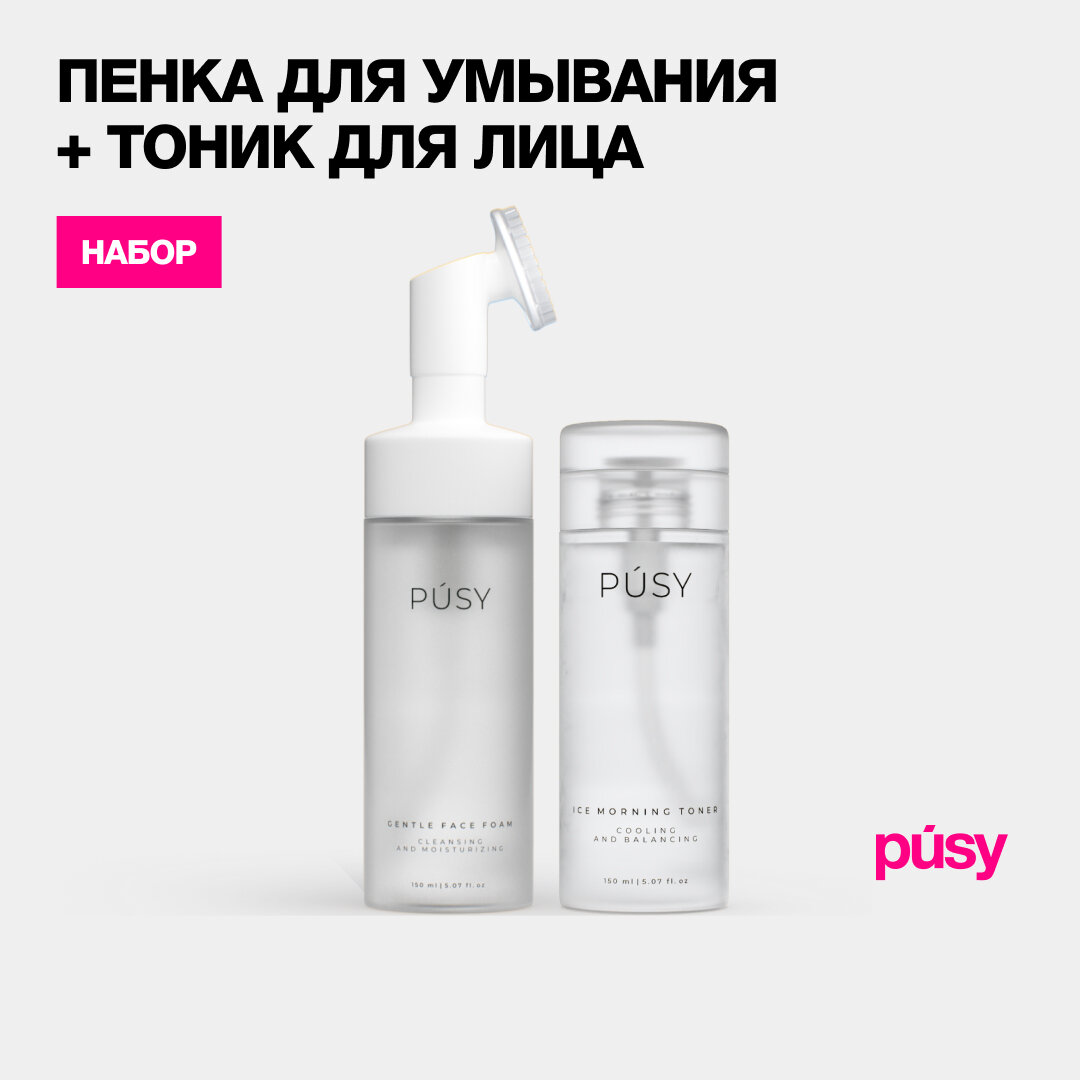 Купить PUSY Набор Пенка для умывания с массажной щеточкой и тоник для лица увлажняющий
