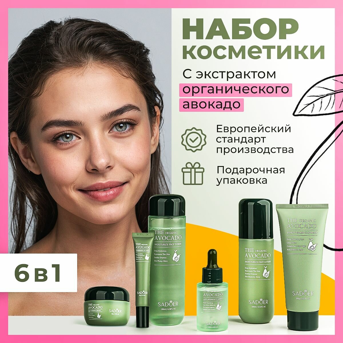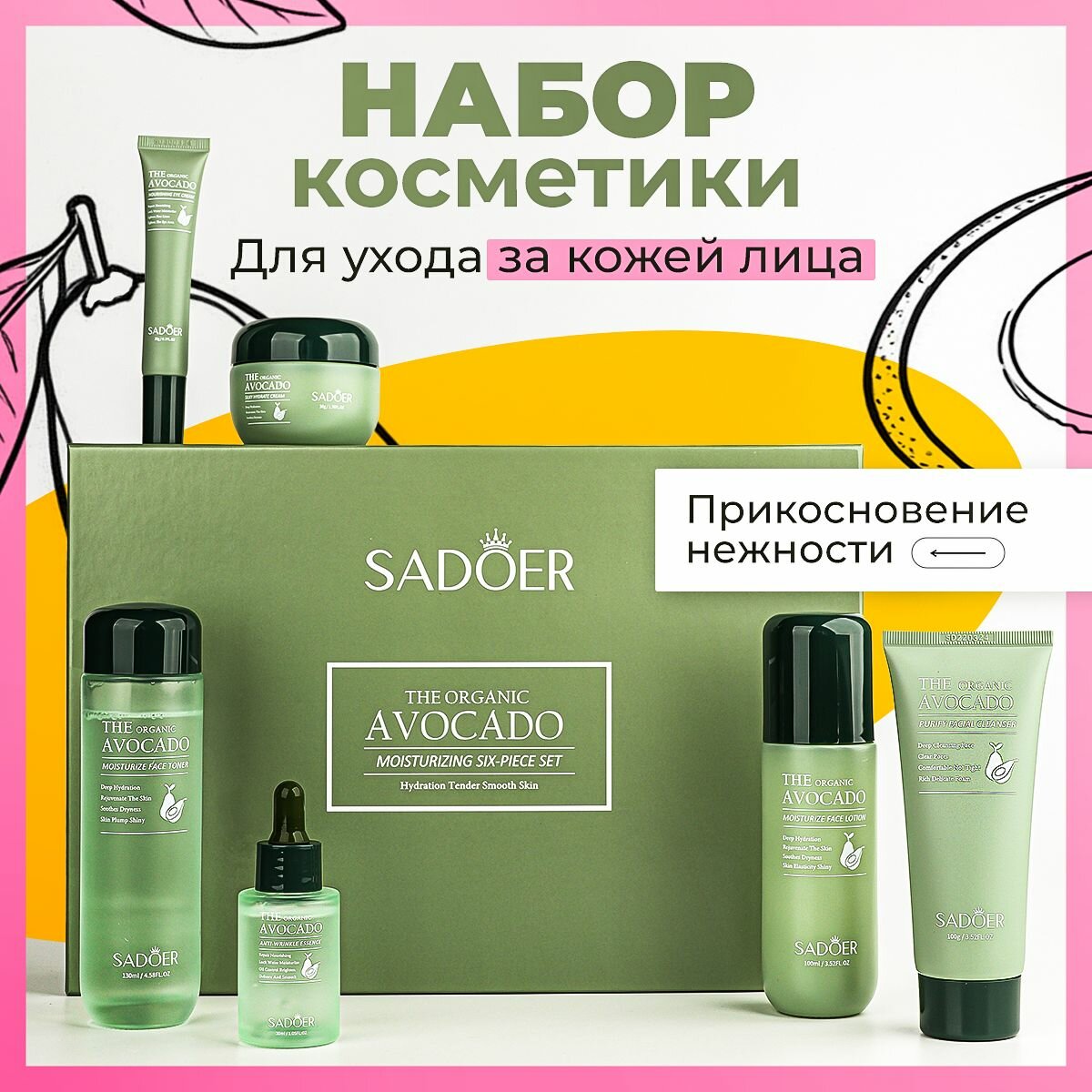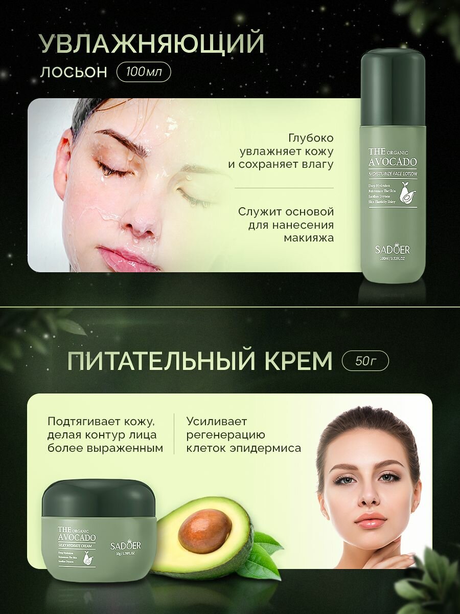 Подарочный увлажняющий набор для лица SADOER с экстрактом авокадо
