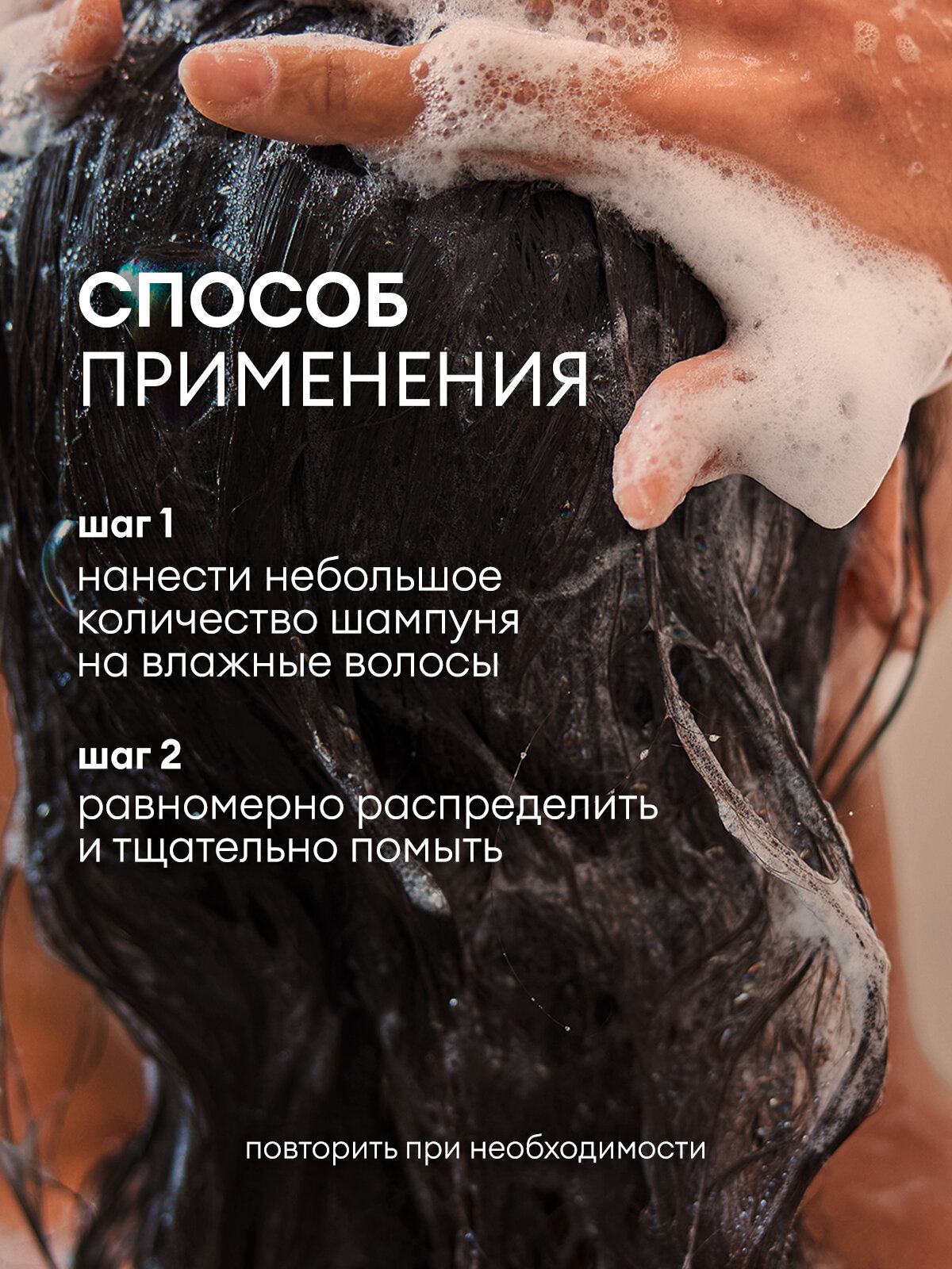 | Способ применения | нанести небольшое количество шампуня на влажные волосы, равномерно распределить и тщательно промыть. При необходимости повторить |
